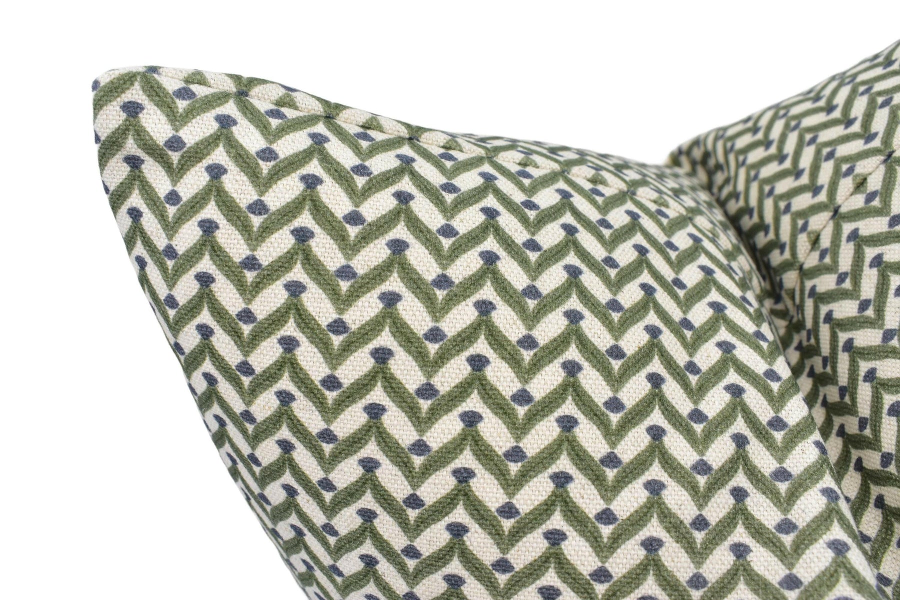 Ashley Wilde - Galatzo - Olive - Small Scale Stylised Herringbone Pattern Cushion Cover - Green Zig Zag Pillow Cover - Modern Geometric