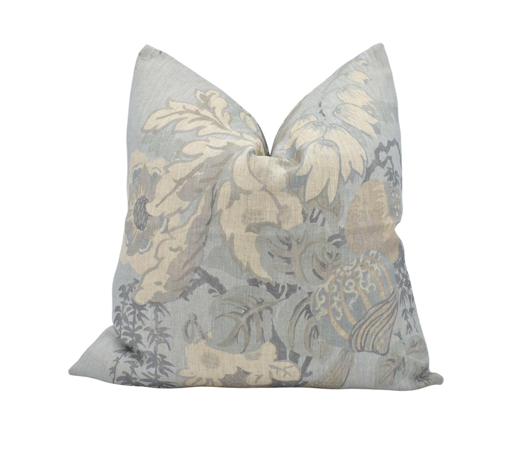 Anna French x Thibaut - Fairbanks - Spa Blue - Stunning 1920's Floral Designer Cushion - Blue Japanese Vase Pillow - Custom Piped Thibaut