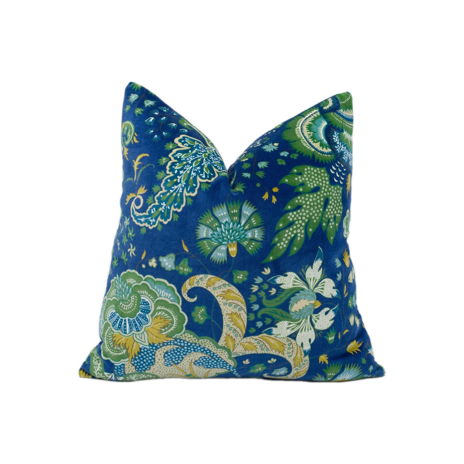 Schumacher - Majorelle Velvet - Blue - Leon Bakst Inspired Floral Designer Velvet Cushion Cover Green Yellow Exotic Eastern Russes Pillow