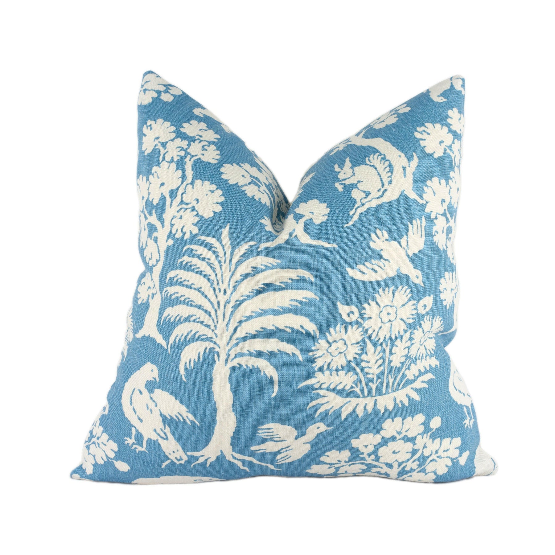Schumacher - Woodland Silhouette - Blue - Charming Flora & Fauna Designer Cushion Cover - Handmade Throw Pillow - Luxury Home Decor