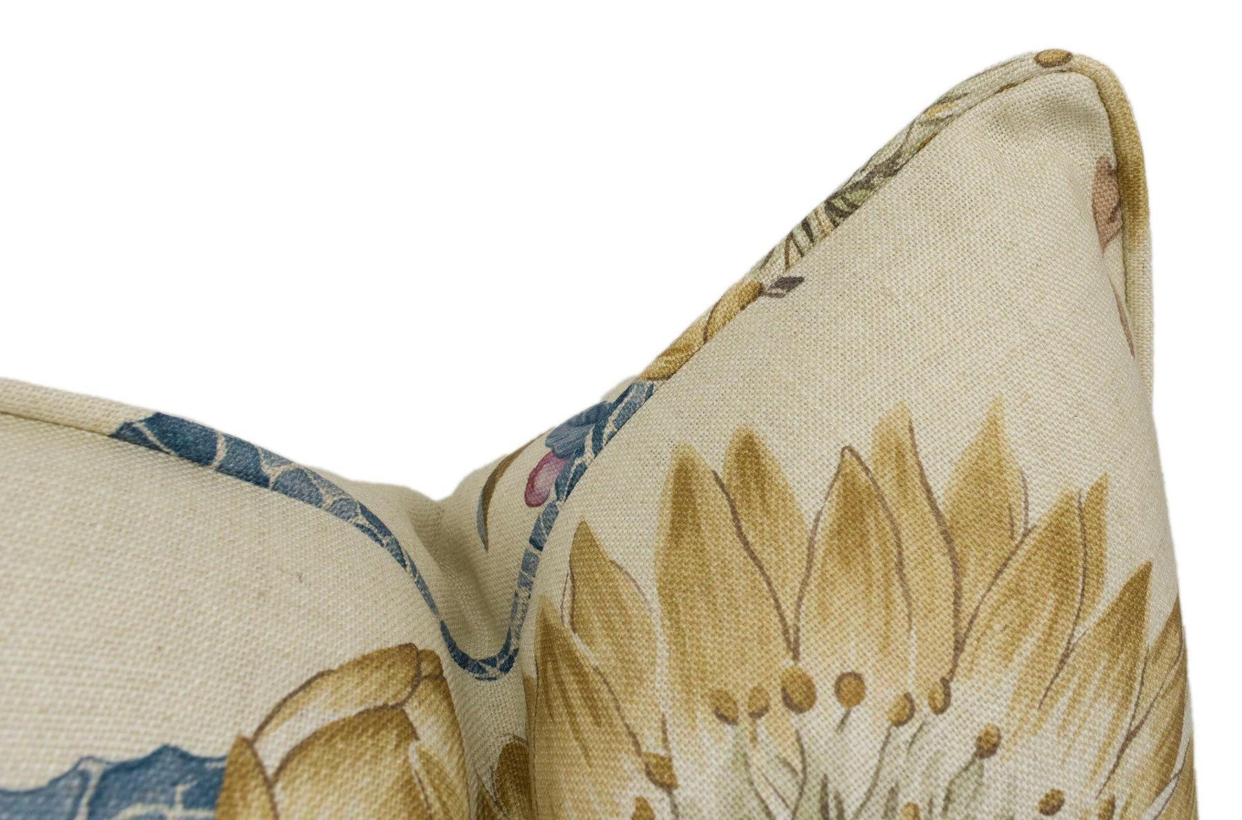 This cushion cover comes self piped, with the option of double sided or with a plain complementary backing.