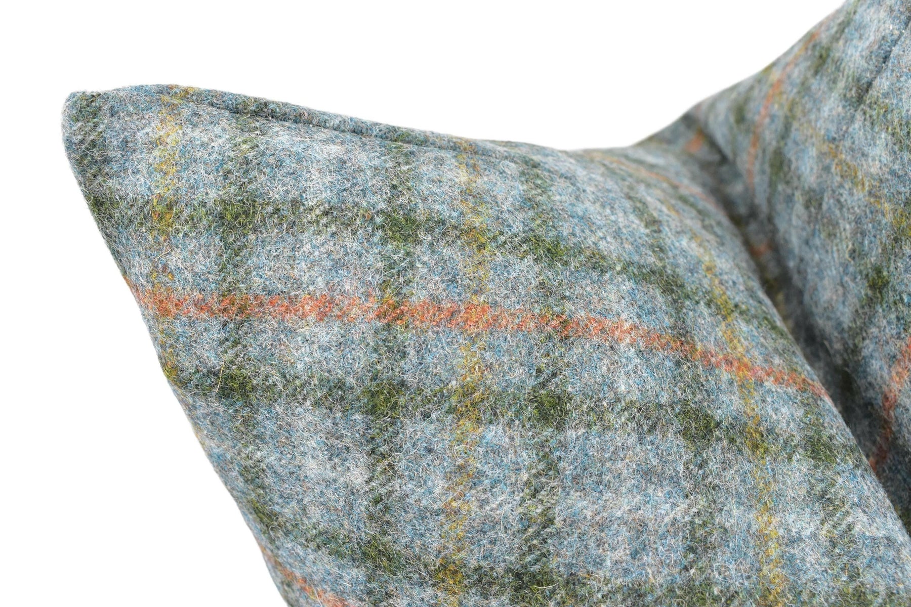 Abraham Moon Balmoral Eau de Nil Wool Cushion Cover – 100% British Wool Pastel Green Plaid
