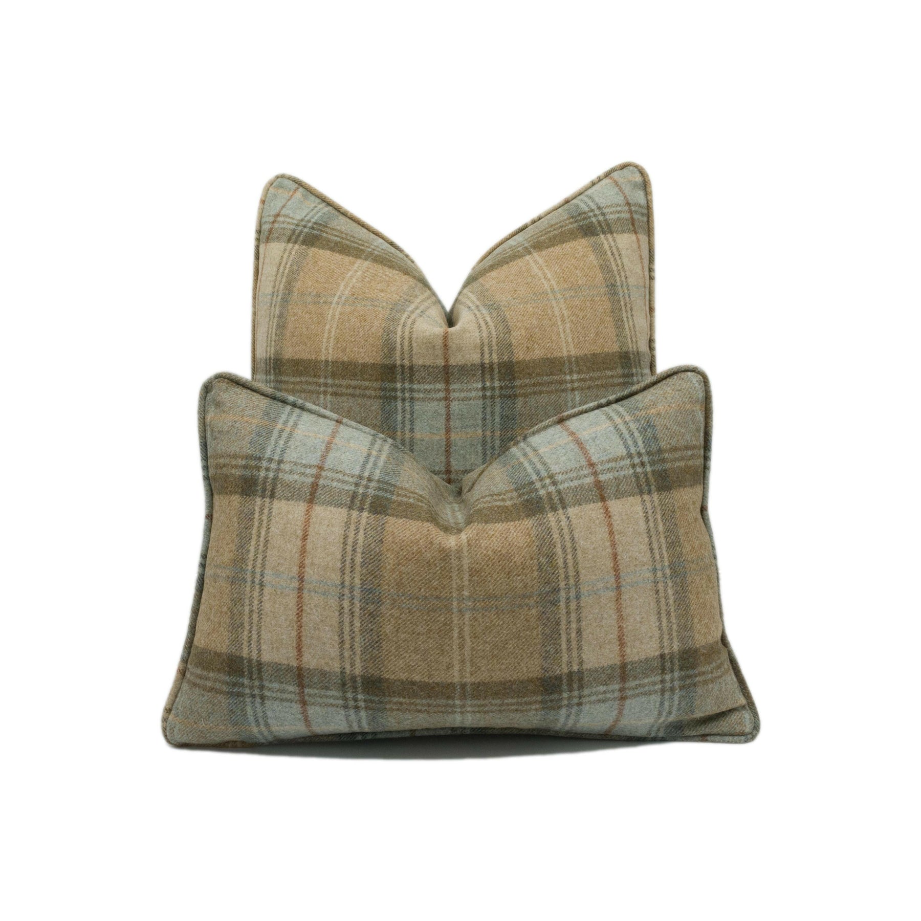 Abraham Moon - Stroud - Eau De Nil - 100% Wool Cushion Cover - Designer Plaid Pillow Cover - Handmade Custom Abraham Moon Pillow.