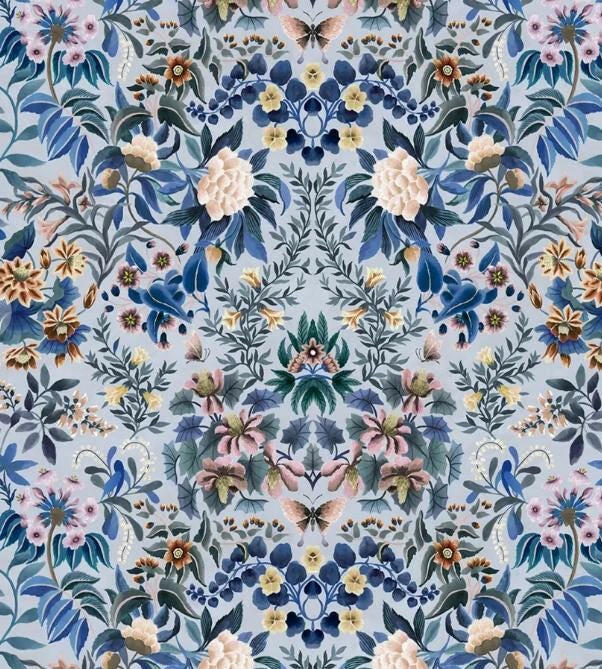 Designers Guild - Ikebana Damask - Slate Blue - Damask Floral Designer Cushion Cover - Custom Foliage Pillow Cover - Blue Butterfly Pillow