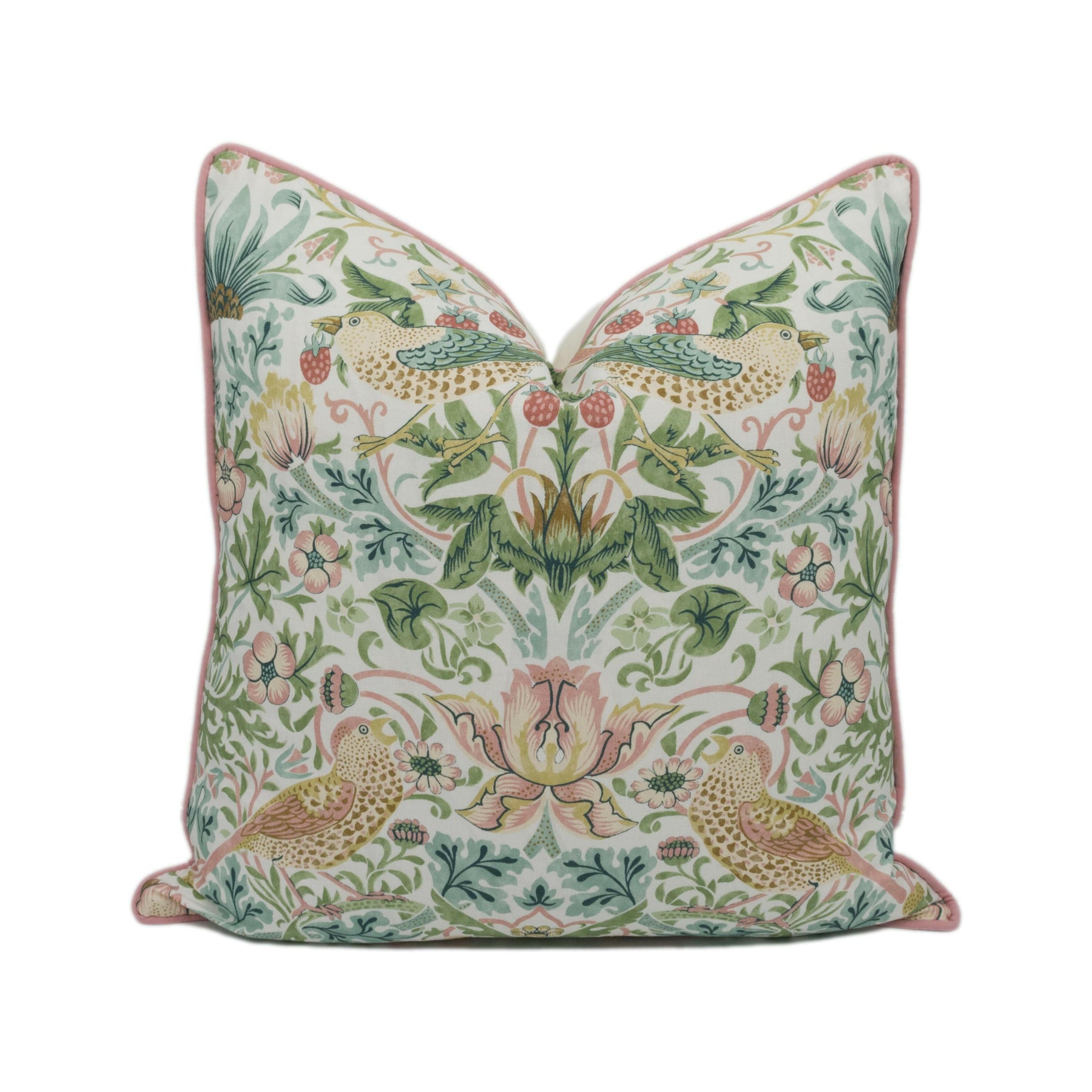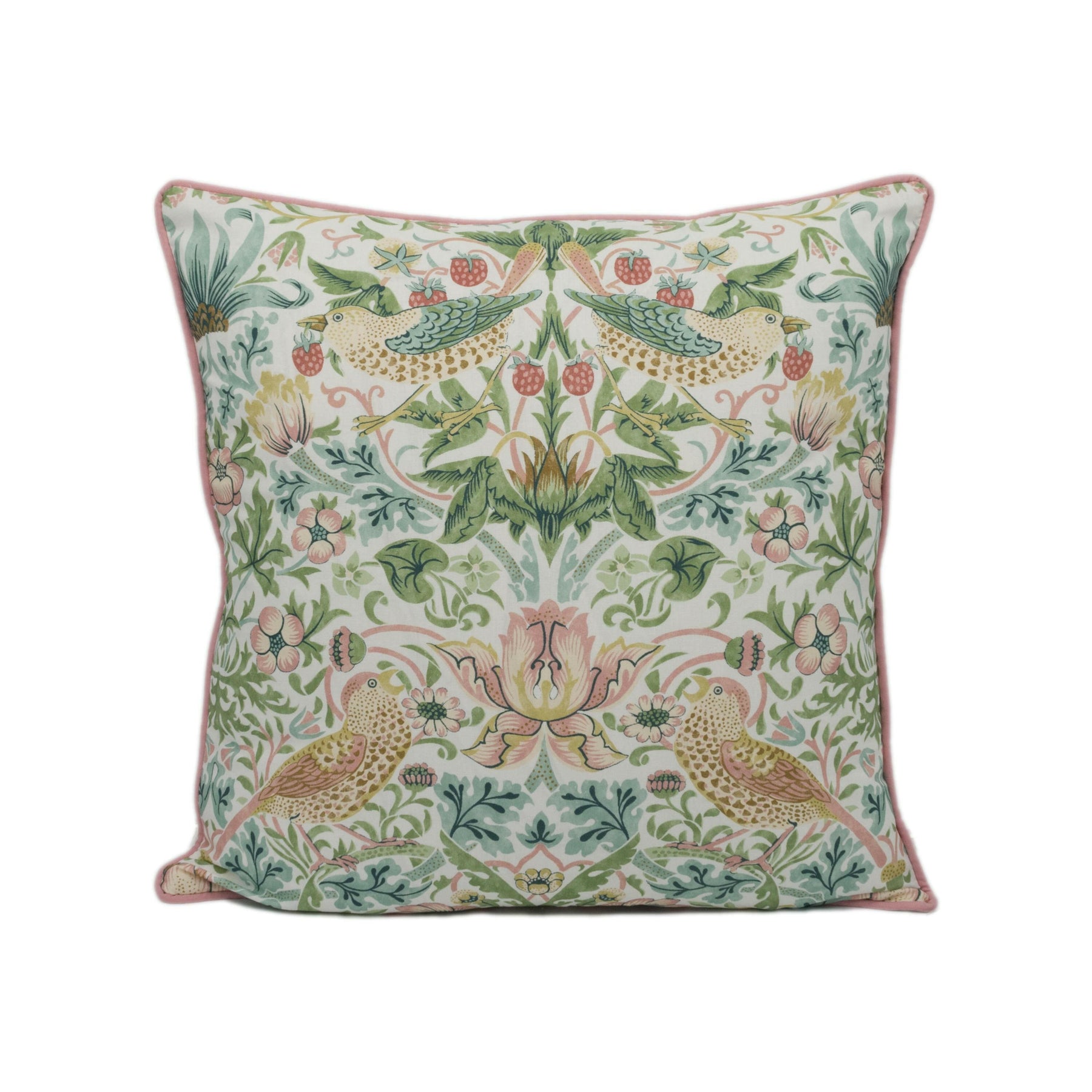 These Strawberry Thief cushion covers in Cochineal / Willow blend deep red with soft, earthy green. The result is rich yet grounded, perfect for adding colour and character to traditional or countryside interiors.
