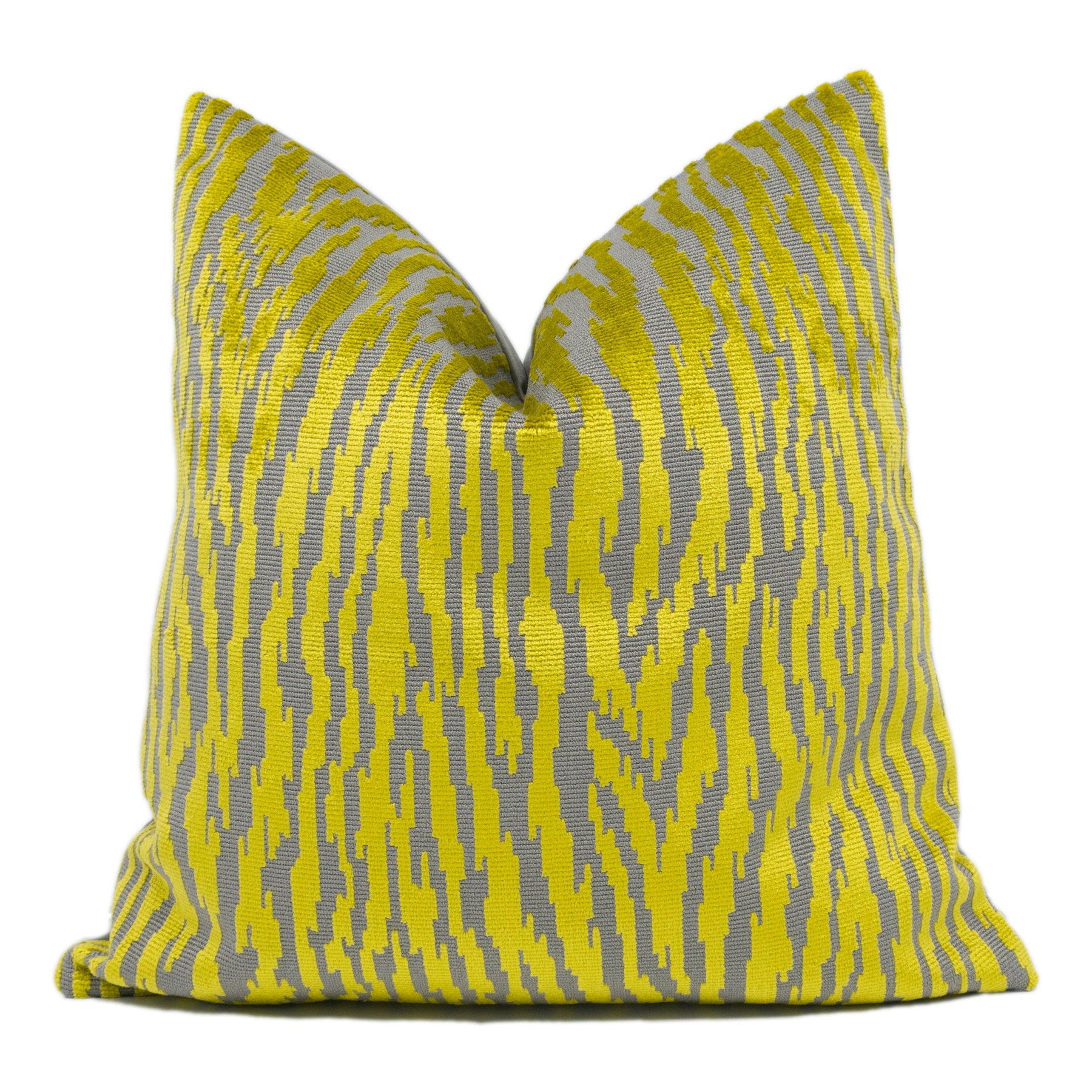 Harlequin - Nia - Chartreuse / Charcoal - Funky Animal Print Inspired Velvet Cushion Cover - Handmade Throw Pillow - Designer Home Décor