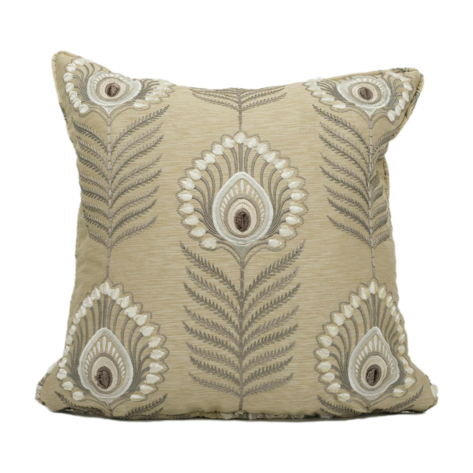 Jane Churchill - Sula - Gold - Bold Embroidered Jewel Peacock Feather Designer Cushion Cover - Luxury Throw Pillow - Handmade Home Decor