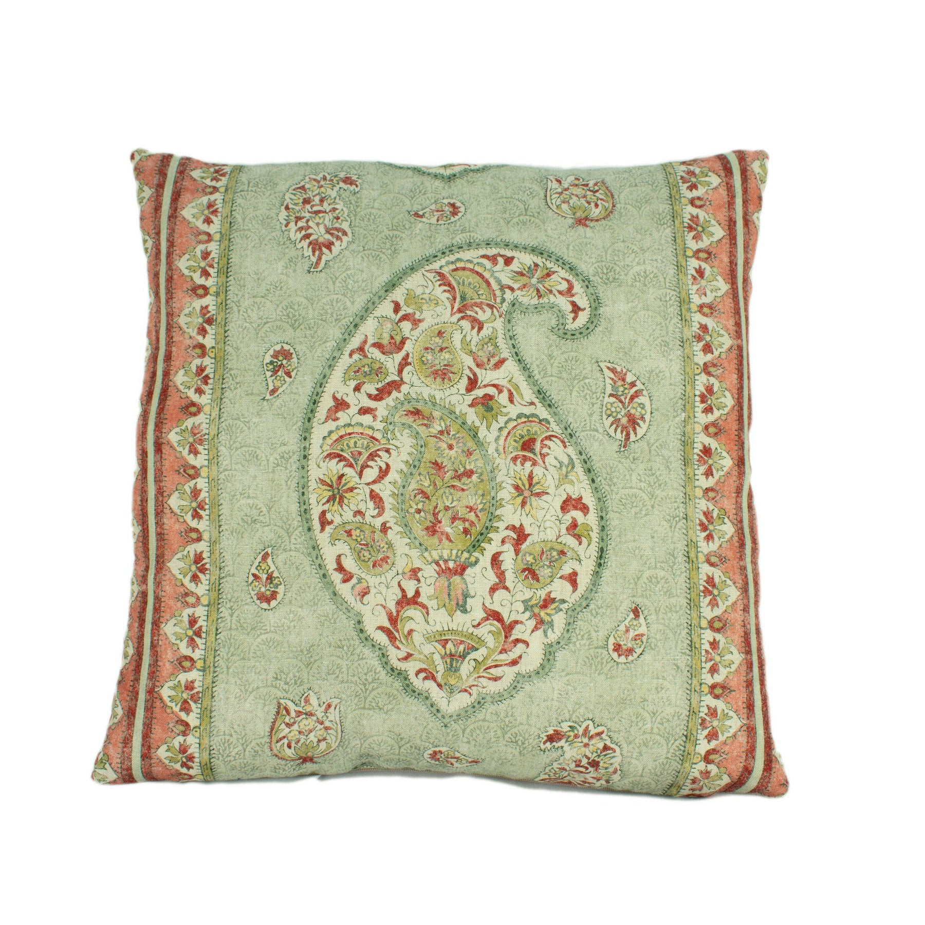 GP & J Baker - Coromandel - Green - Intricately Detailed Kashmir Paisley Designer Cushion Cover - Luxury Throw Pillow - Handmade Home Decor