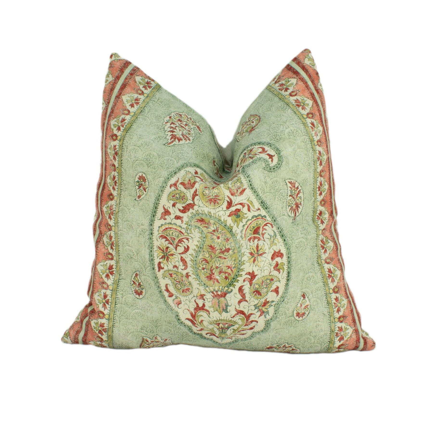 GP & J Baker - Coromandel - Green - Intricately Detailed Kashmir Paisley Designer Cushion Cover - Luxury Throw Pillow - Handmade Home Decor.