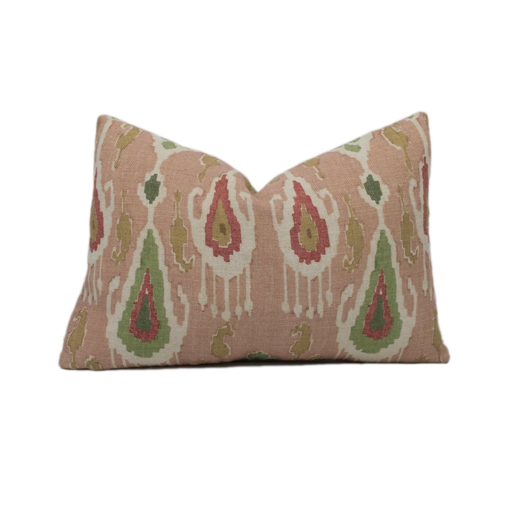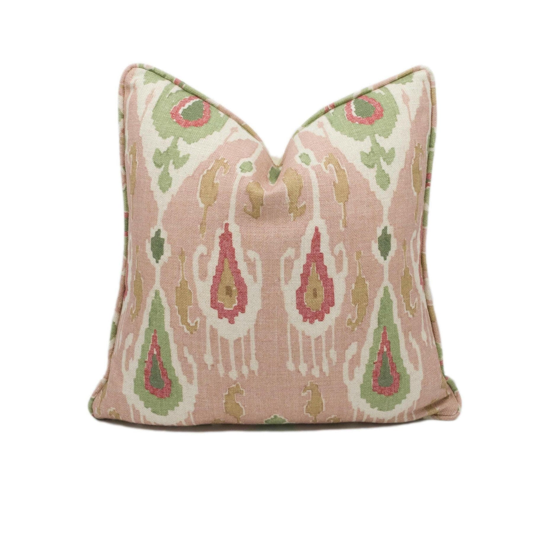 GP & J Baker - Ikat Bokhara - Rose Green - Eastern Silk Road Linen Ikat Designer Cushion Cover - Luxury Throw Pillow - Handmade Home Décor.