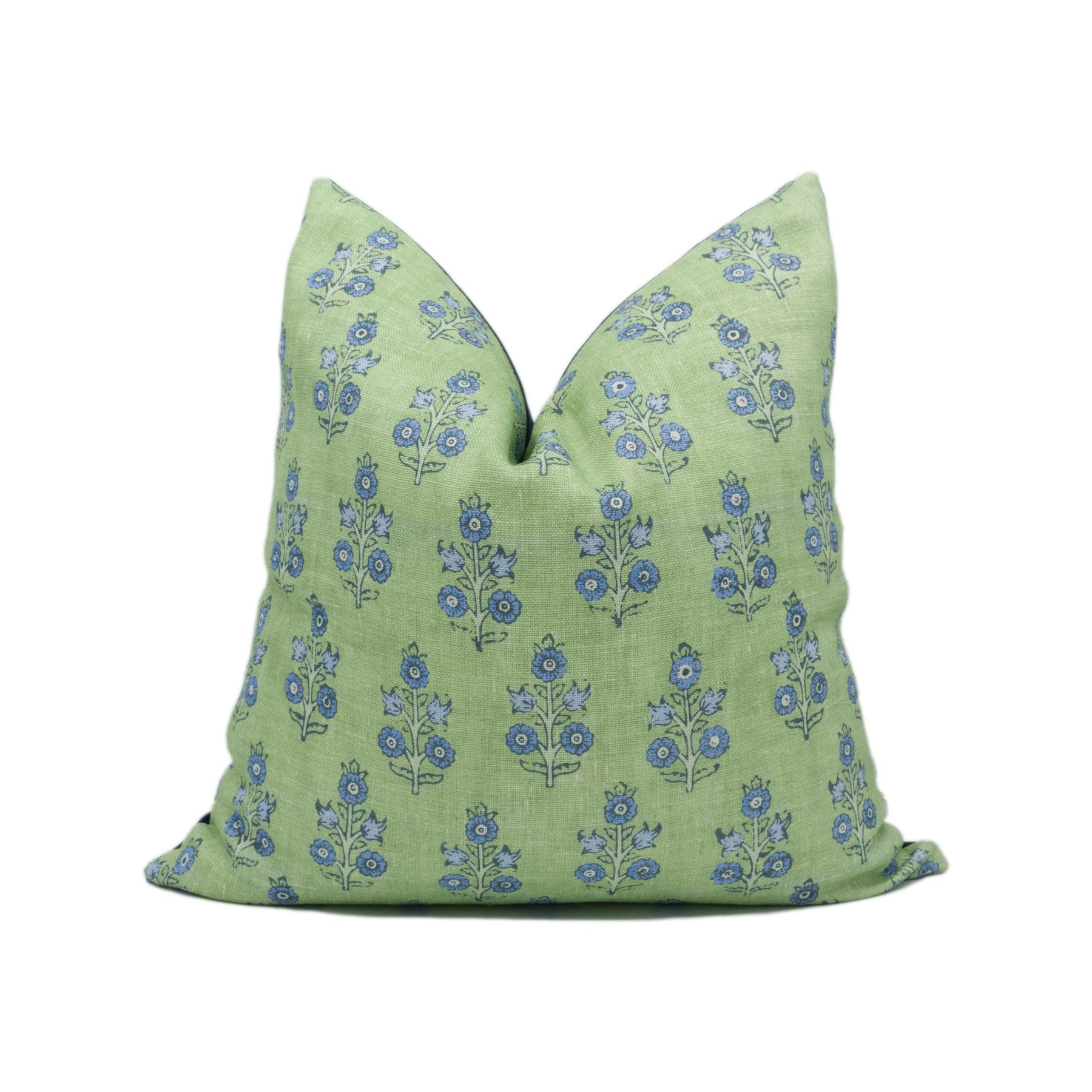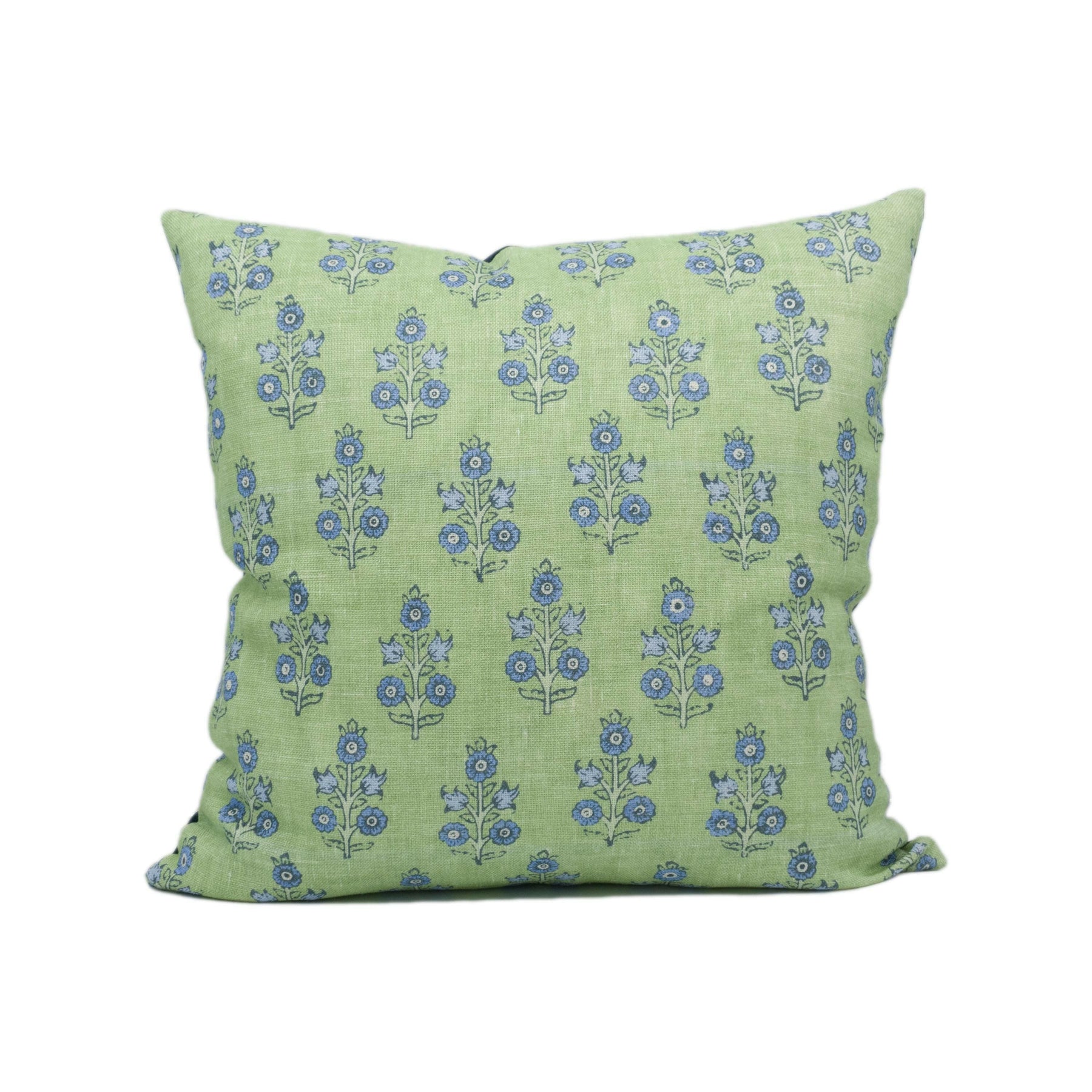 GP & J Baker - Poppy Sprig - Green / Blue - Versatile Indian Inspired Floral Cushion Cover - Luxury Throw Pillow - Designer Home Décor