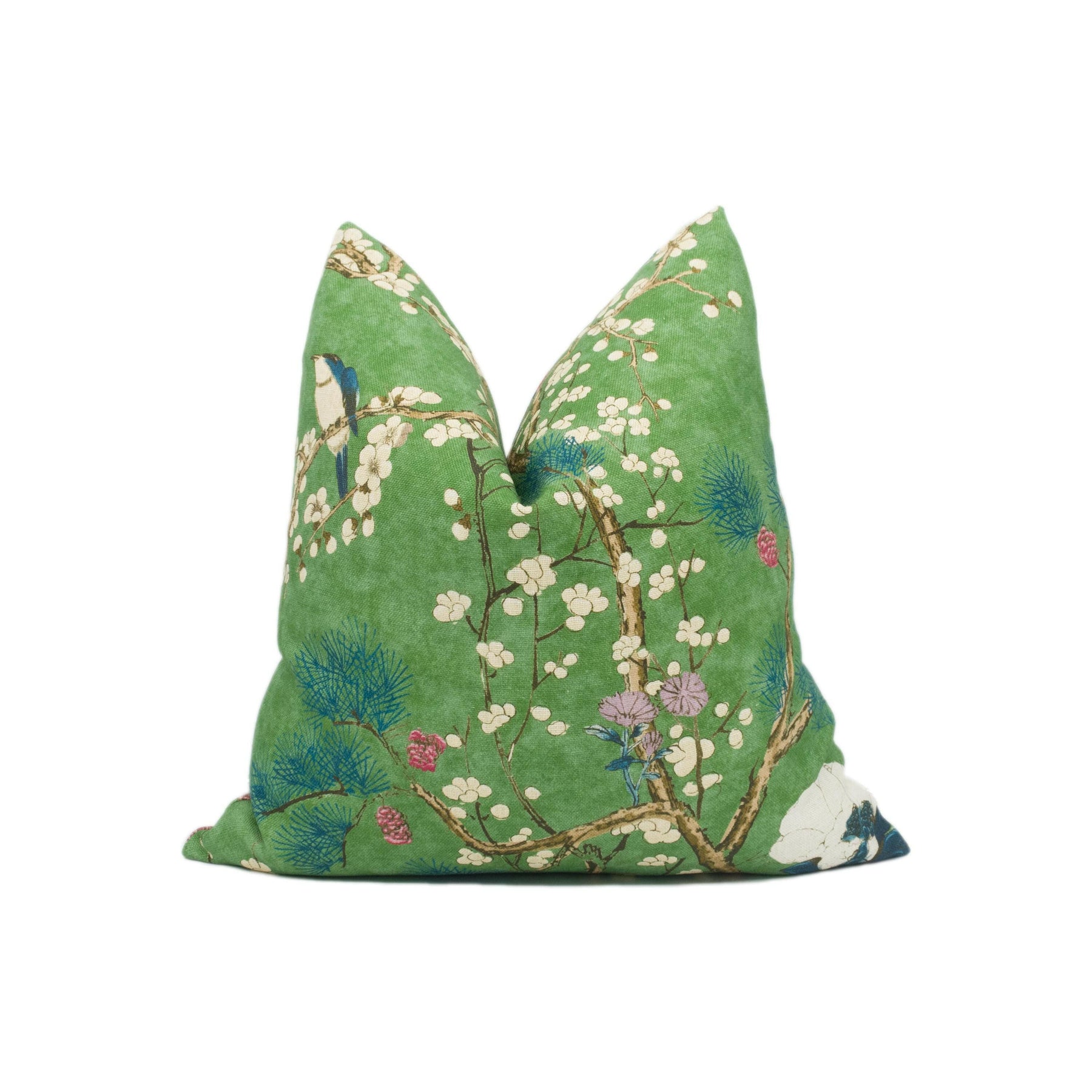 Thibaut - Katsura - Emerald - Rich Winding Japanese Maple Floral Designer Cushion Cover - Luxury Throw Pillow - Designer Home Decor