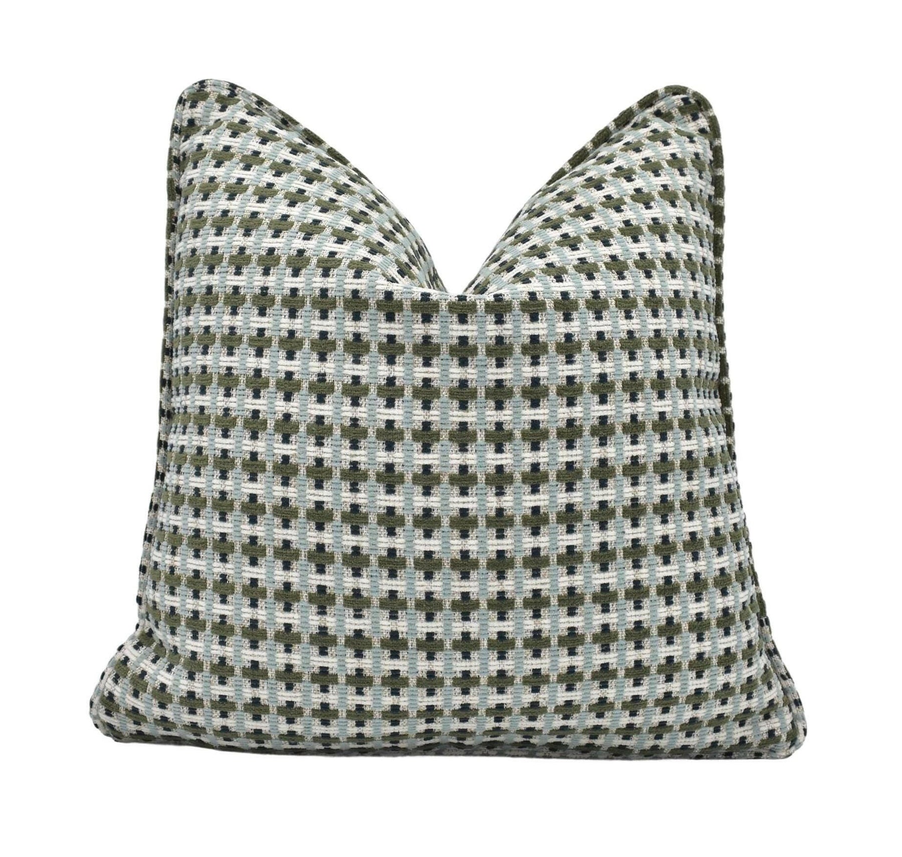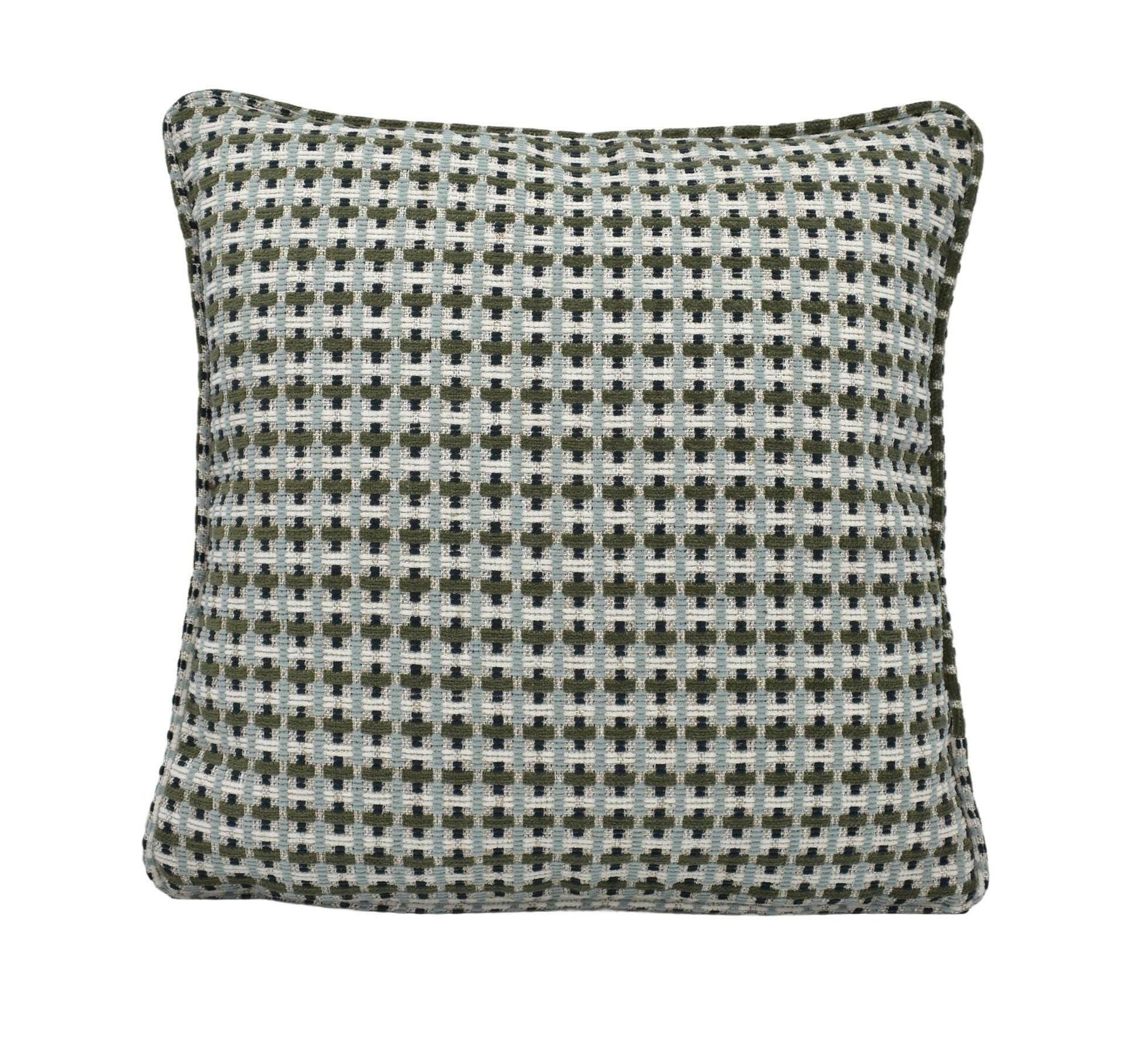 Villa Nova - Axis - Kombu - Contemporary Geometric Woven Chenille Cushion Cover - Green Blue Small Cross Recycled Cotton Pillow Cover