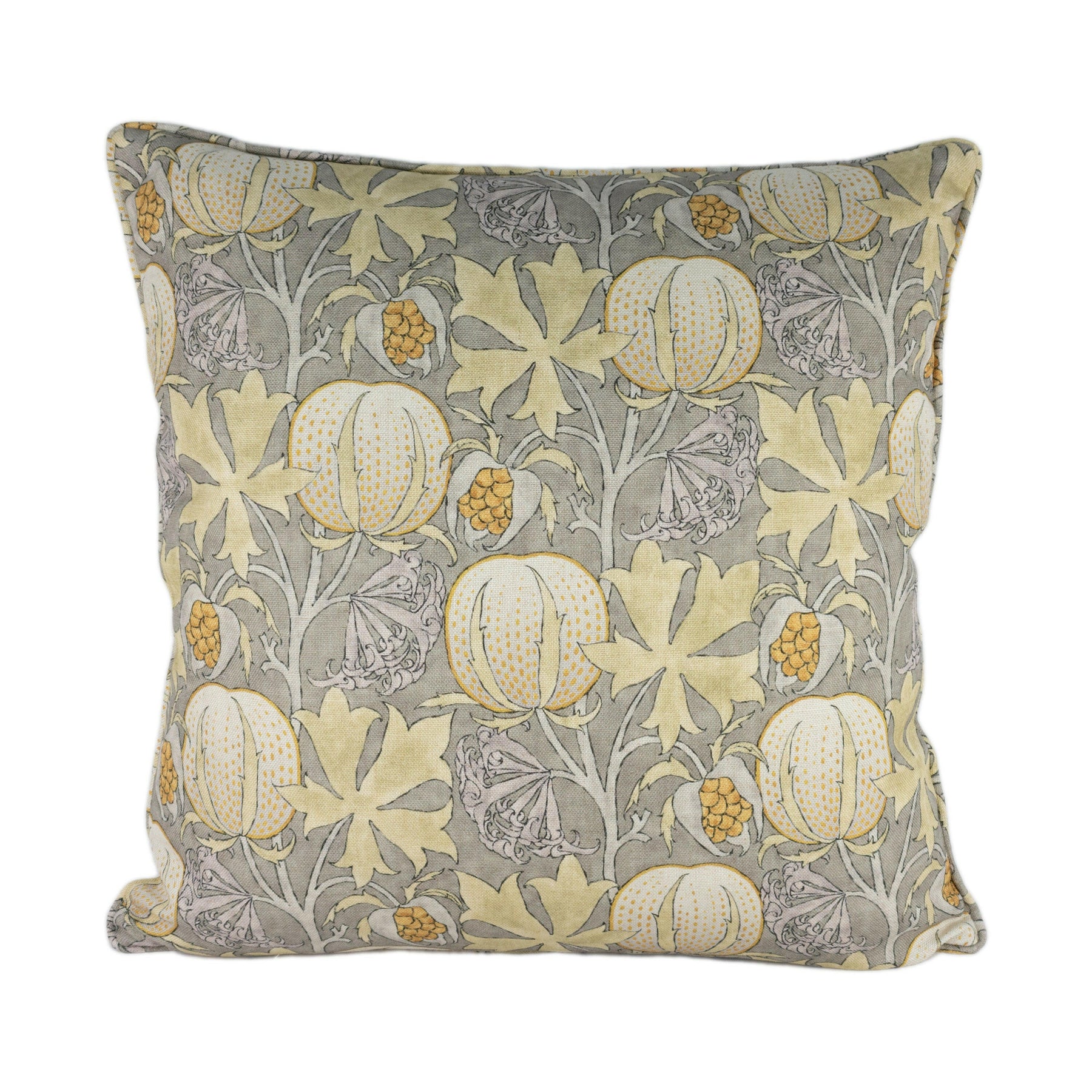 GP and J Baker - Pumpkins - Grey / Ochre - Inspired 20th Century Archival Bloc Print Designer Cushion Cover - Luxury Throw Pillow - Handmade
