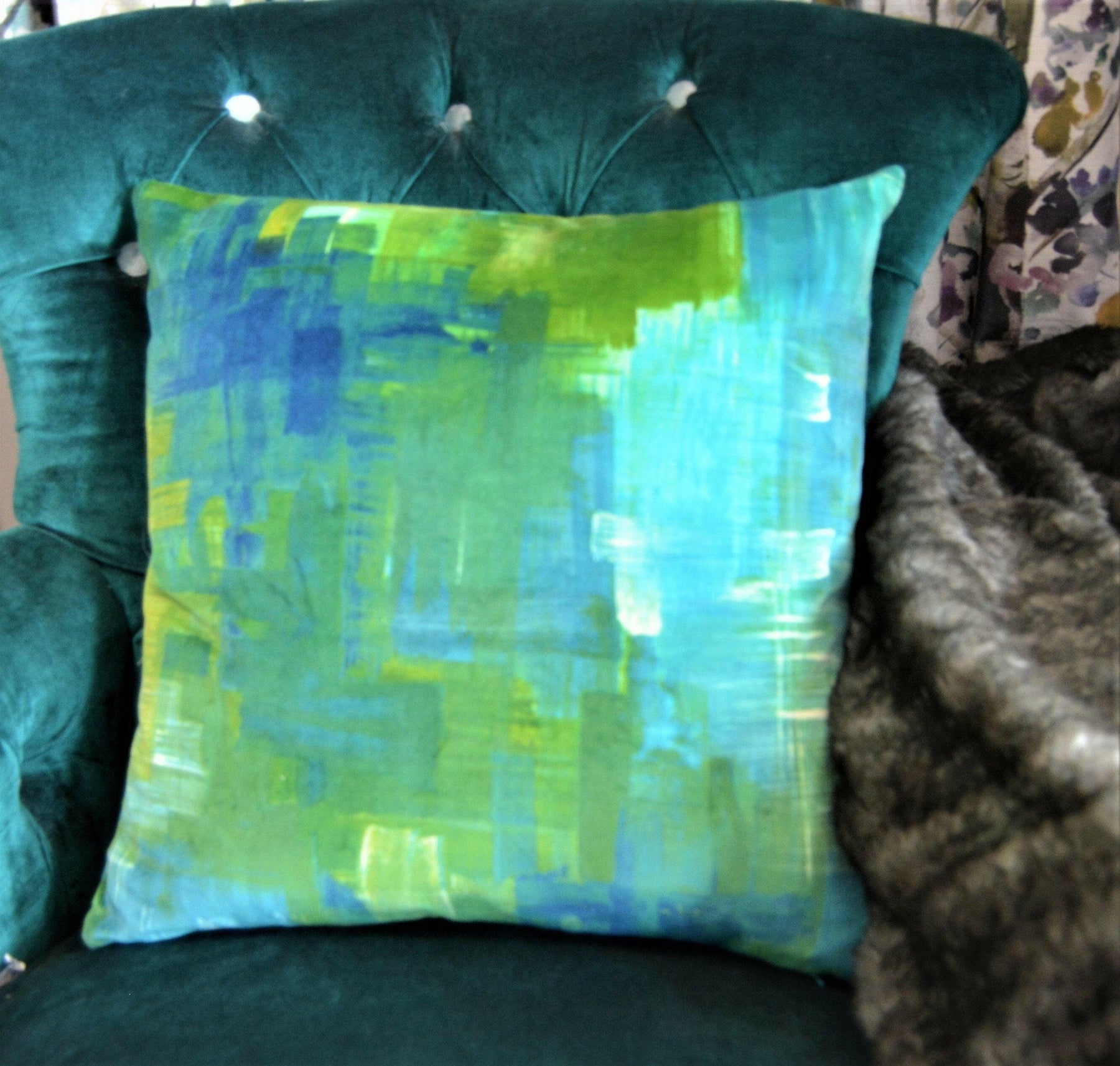 Harlequin - Amoura Velvet - Emerald / Lime - Stunning Brushstroke Velvet Cushion Cover Throw Pillow Designer Home Decor.