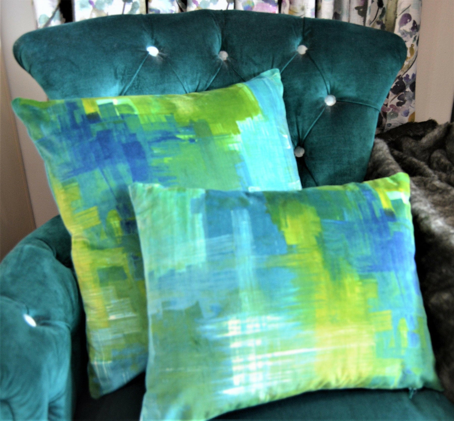 Harlequin - Amoura Velvet - Emerald / Lime - Stunning Brushstroke Velvet Cushion Cover Throw Pillow Designer Home Decor