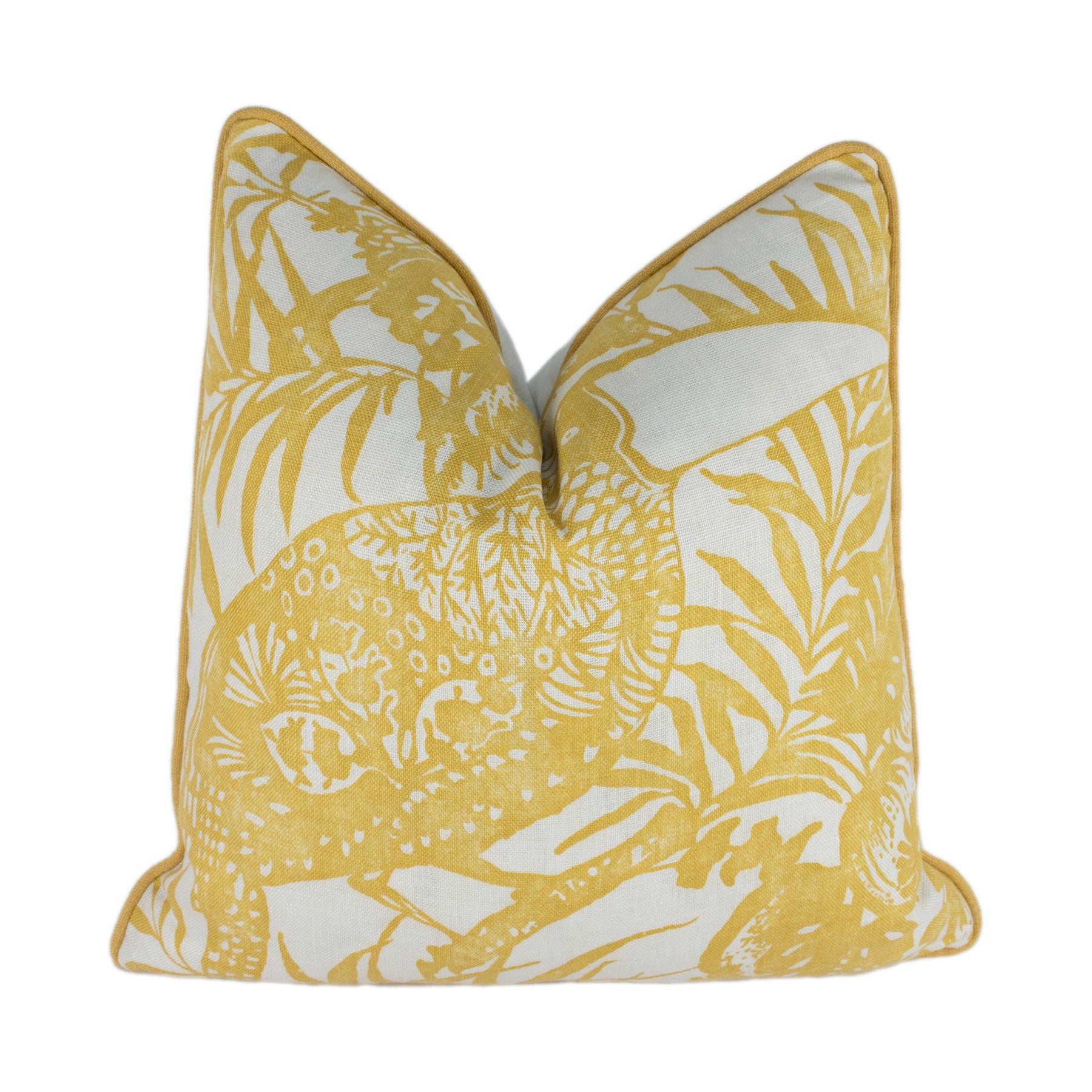 This cushion cover comes contrast piped in a complementary ochre, with the option of being made double-sided or with a plain back.