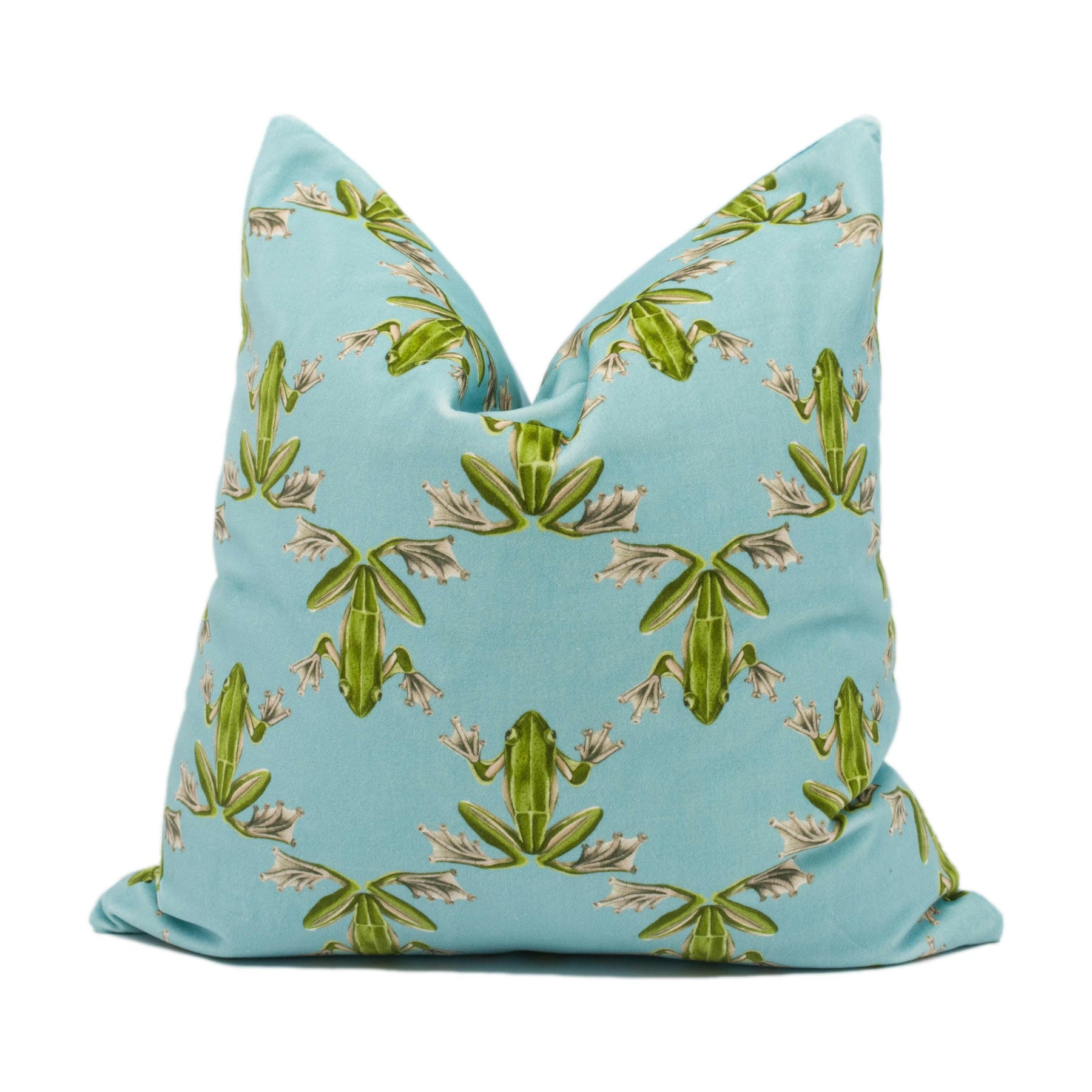 Harlequin - Wood Frog Velvet - Azul / Forest - Whimsical Trellis Pattern Frogs Cushion Cover - Handmade Throw Pillow - Designer Home Décor