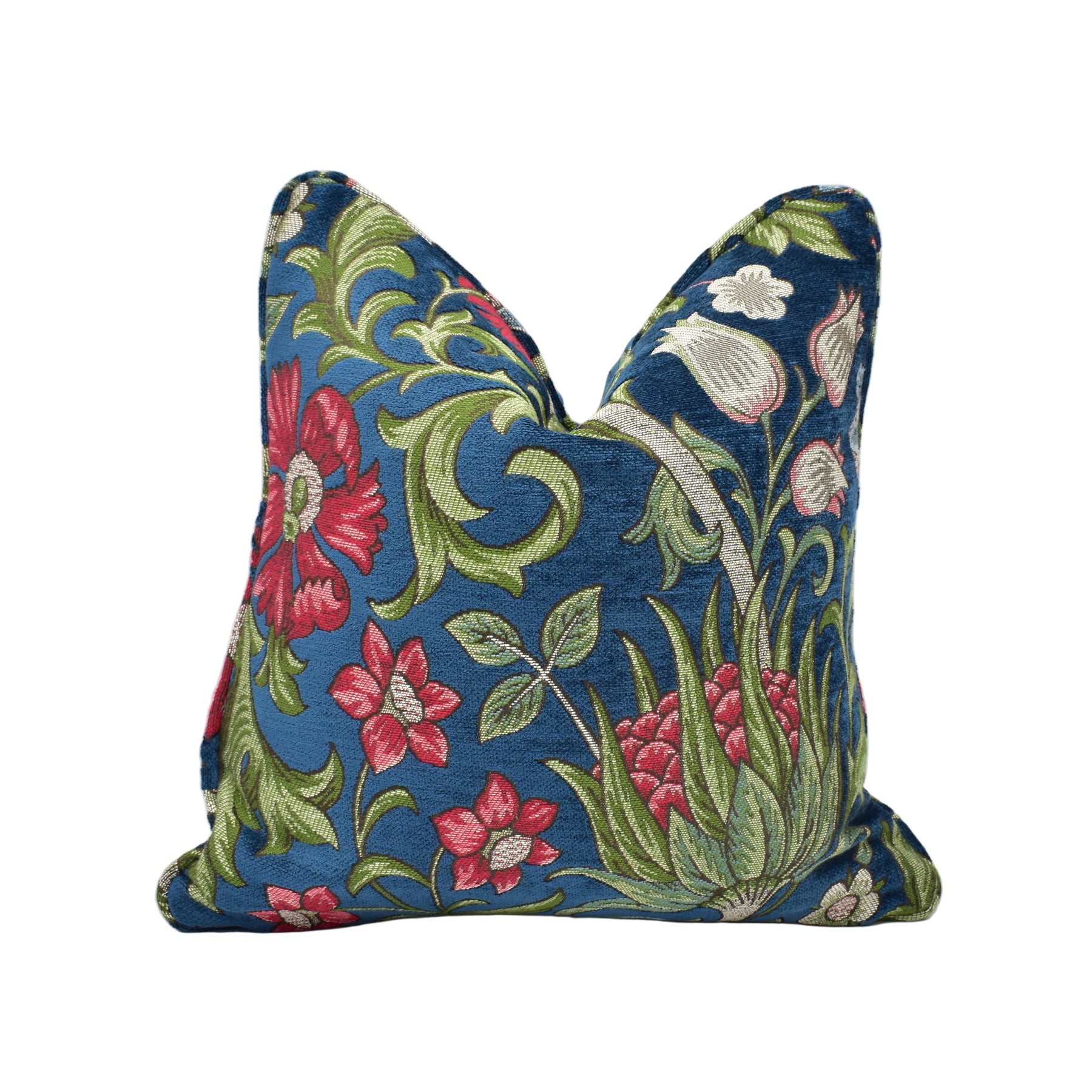 Enliven your interiors with the elegant drama of the Chalfont – Jewel cushion cover, artfully crafted by May Evelyne. This richly textured jacquard presents a bold trailing floral design, rendered with tactile chenille relief and set against a deep, jewel-toned ground. The fabric’s opulent pattern and artisanal weave make it an attention-grabbing focal point—ideal for dressing heritage armchairs, modern sofas, or tailored window seats.