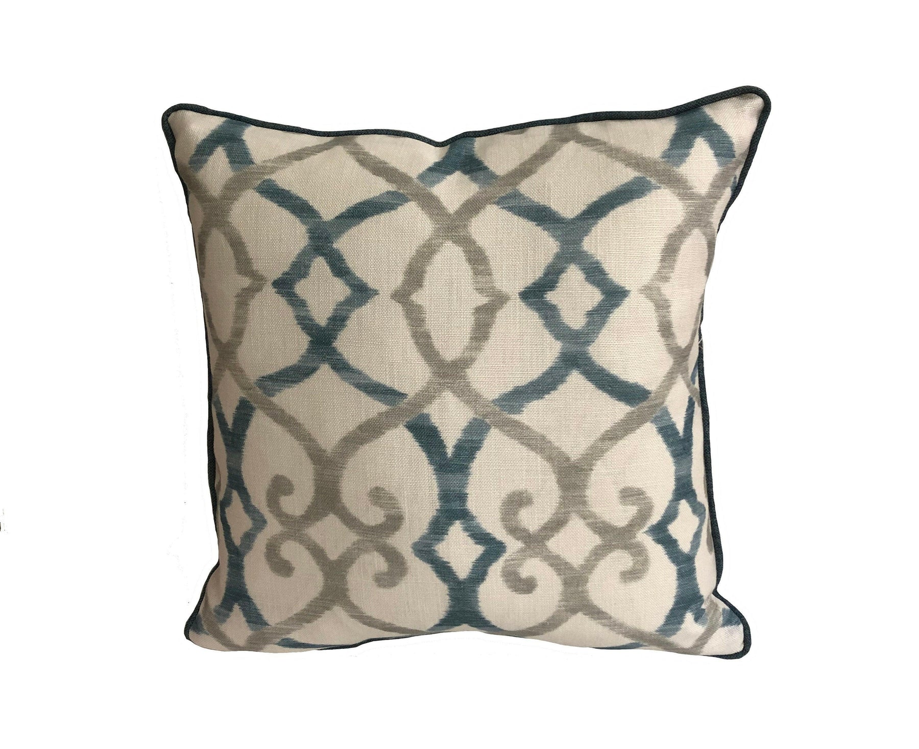 Jane Churchill - Colefax and Fowler - Silwood - Blue - Striking Trellis Print Cushion Cover - Handmade Throw Pillow Designer Home Decor