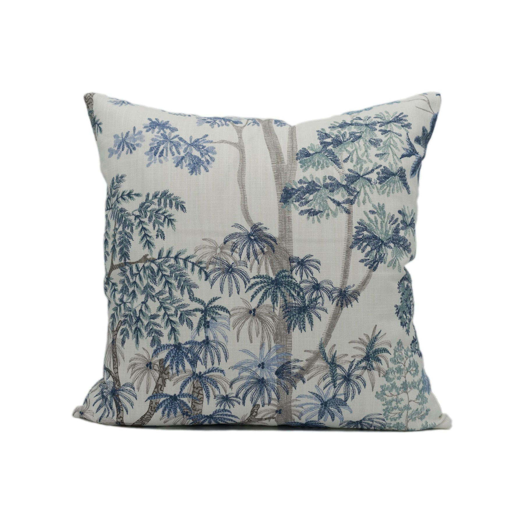 Jane Churchill - Kingswood - Blue - Magnificent Embroidery Inspired Tree Canopy Cushion Cover - Handmade Throw Pillow - Designer Home Décor