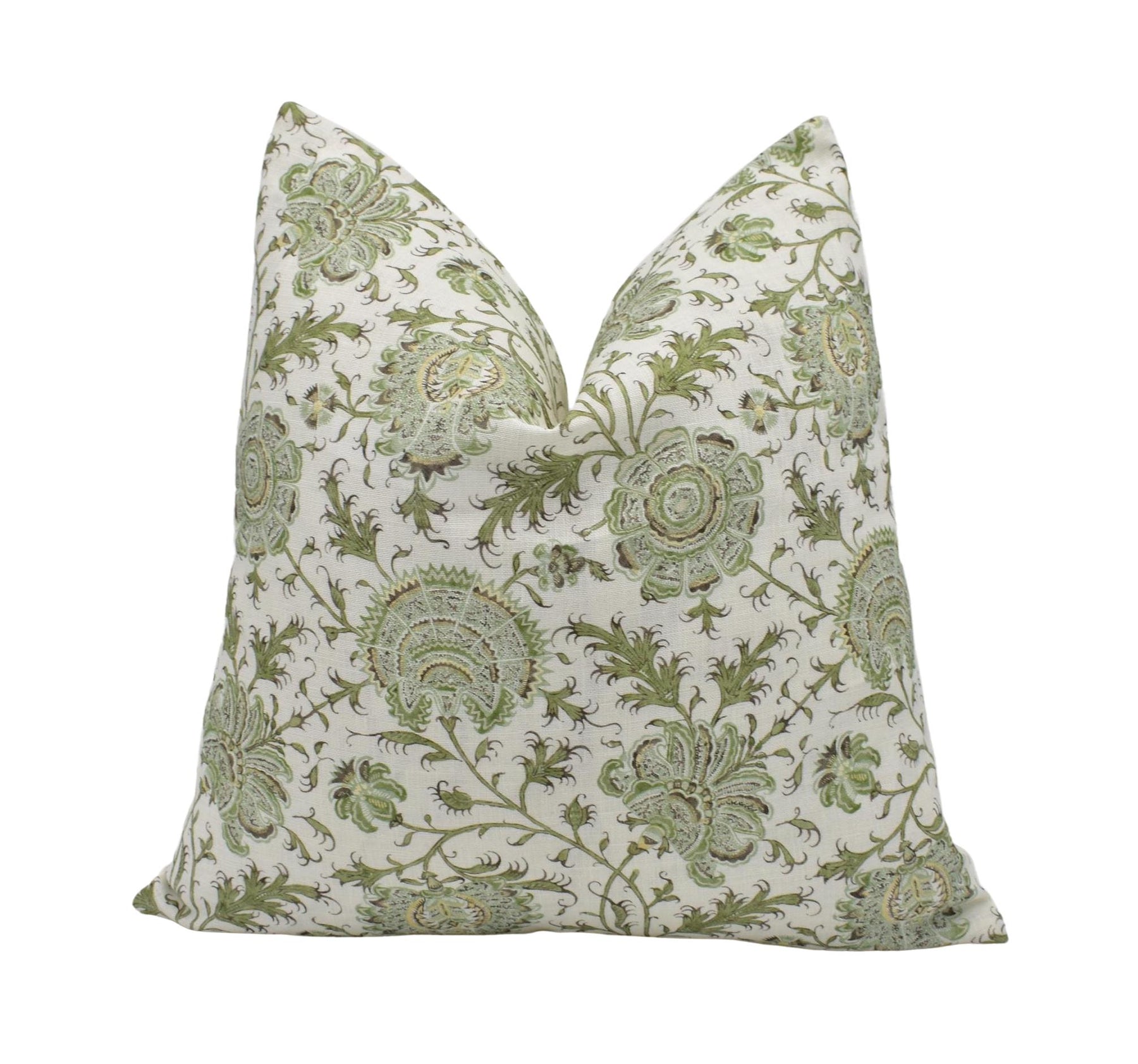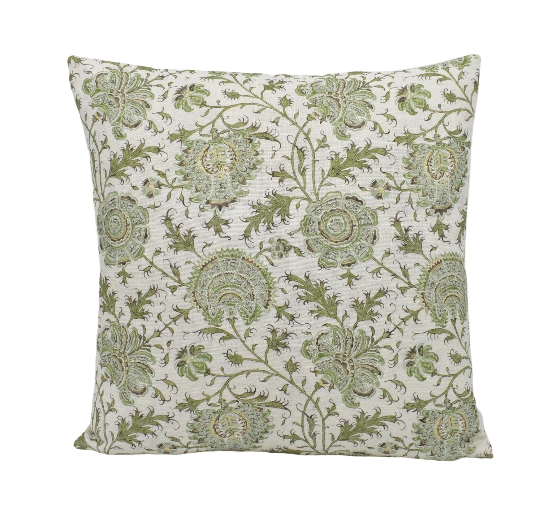Lee Jofa x Sarah Bartholomew - Indiennes Floral - Ivy - Elegant Traditional Floral Indienne Designer Cushion Cover White Green Throw Pillow