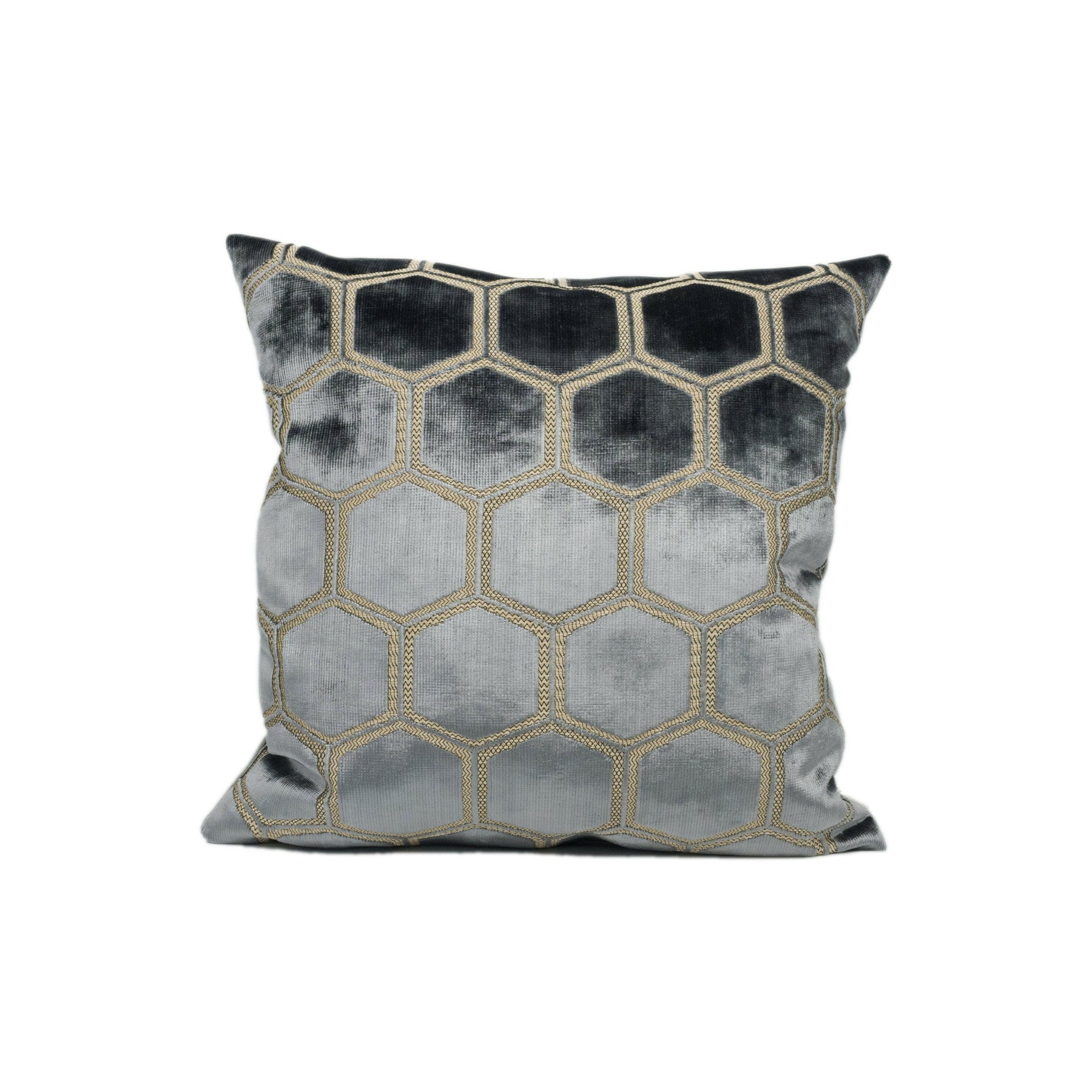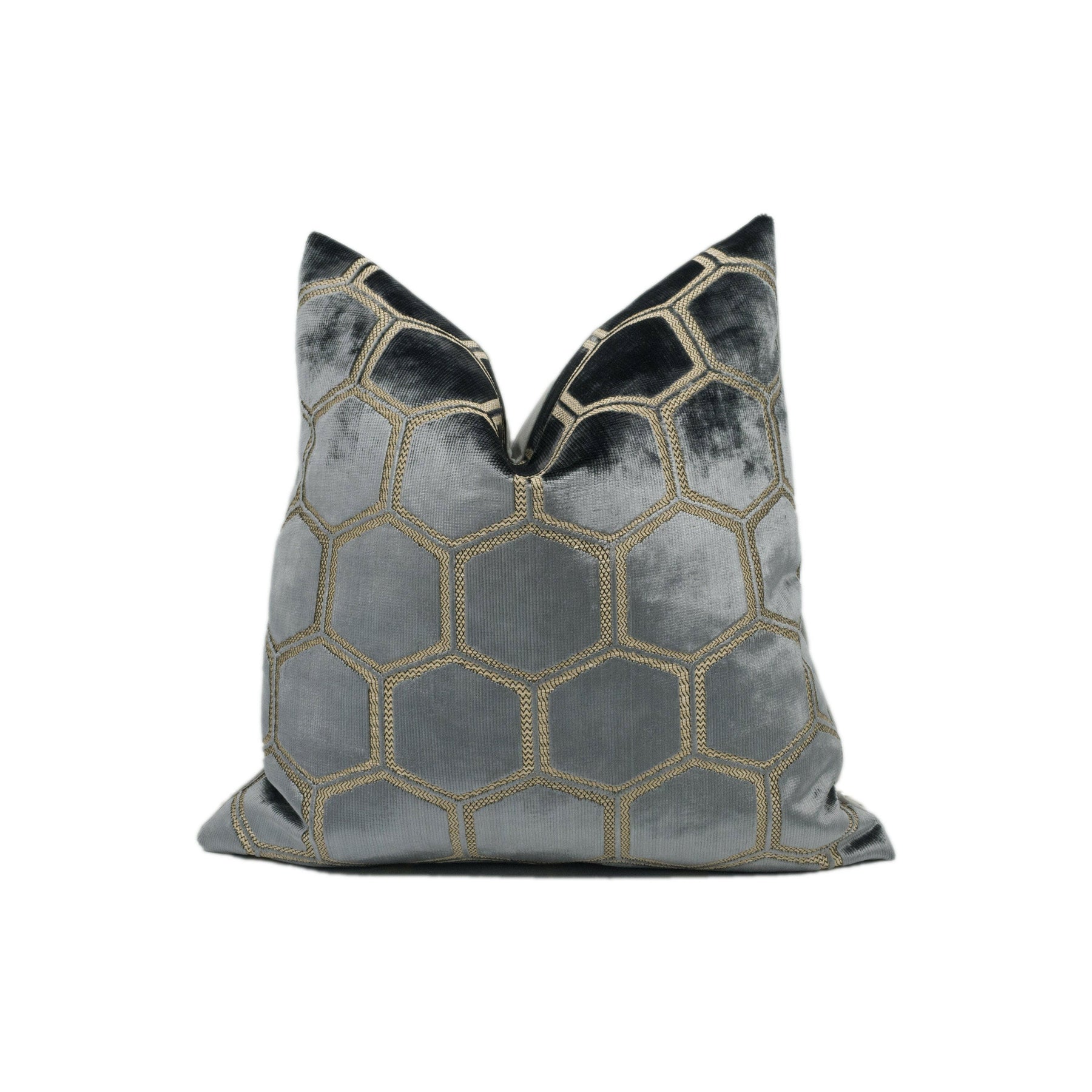 Designers Guild - Manipur - Silver - Luxury Cut Velvet Hexagon Honeycomb Cushion Cover Throw Pillow Designer Home Décor