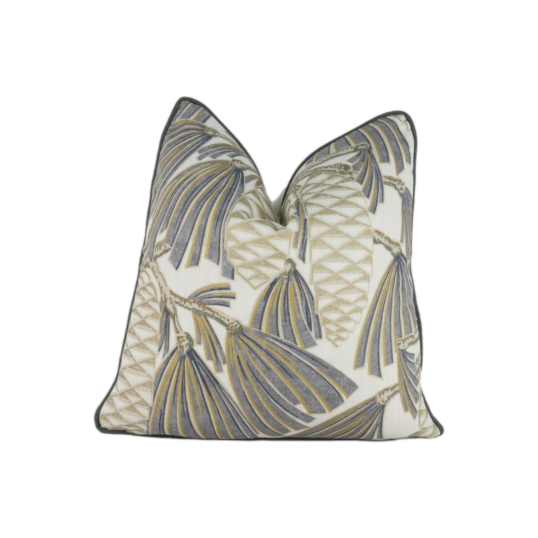 Harlequin - Foxley - Platinum - Stunning Contrast Piped Metallic Art Deco Cushion Cover Throw Pillow Designer Home Decor