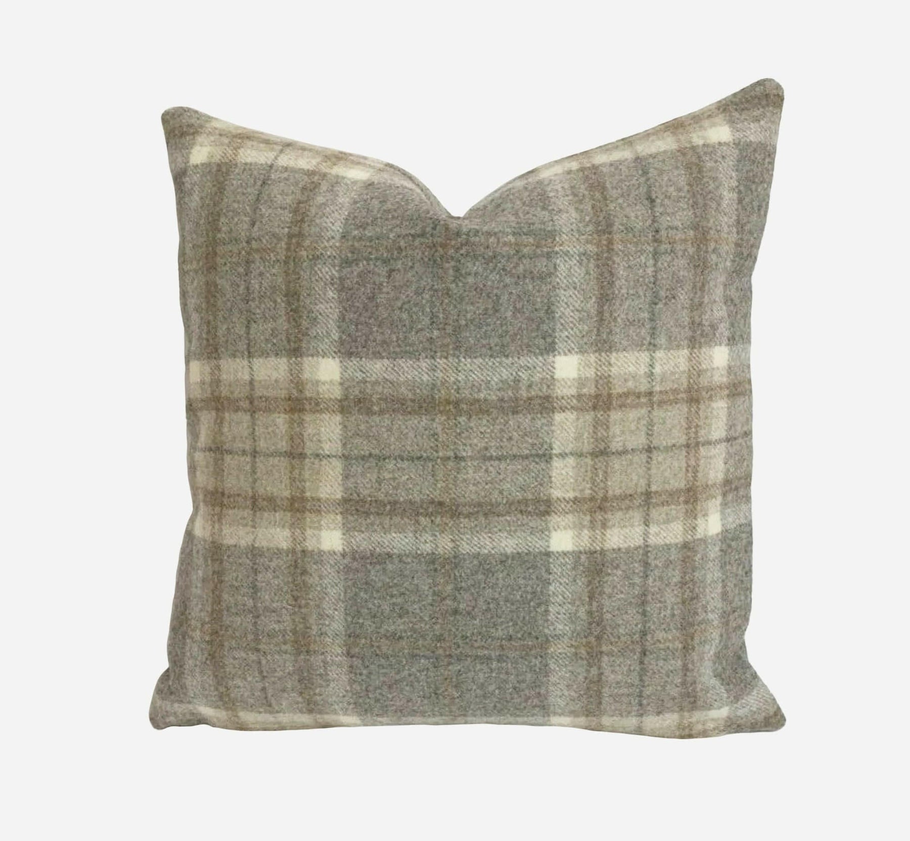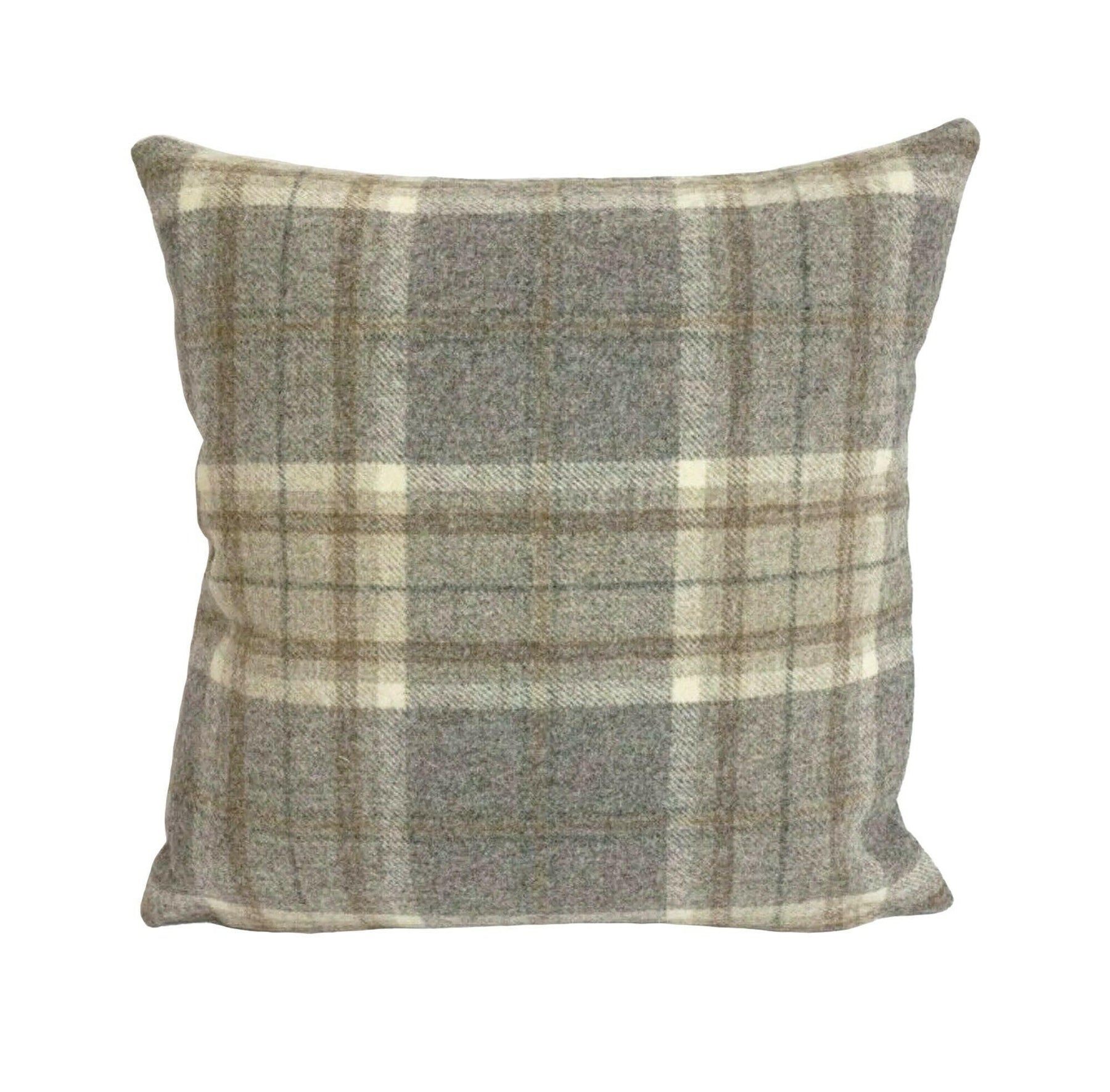 Abraham Moon Aysgarth Mushroom Wool Cushion Cover – 100% British Wool Taupe Check Plaid