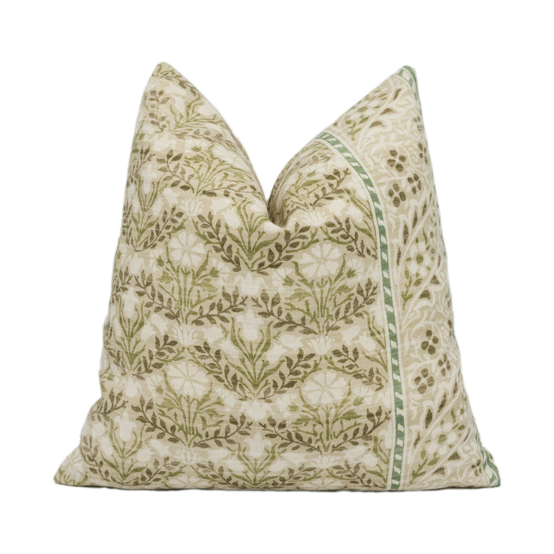 William Morris - Morris Bellflowers - Fennel / Grey - Stunning Classic English Designer Cushion Cover Home Décor Throw Pillow.