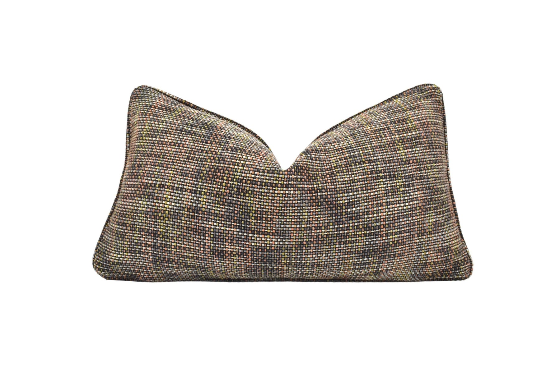Harlequin - Cestino - Cinnamon - Contemporary Wool Tweed Thick Loop Weave Pillow Cover - Orange Black Designer Woven Handmade Pillow.