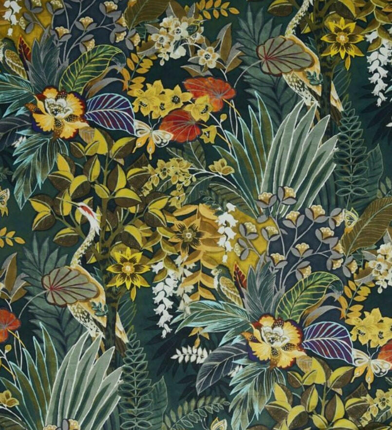 Prestigious - Hidden Paradise - Emerald - Tropical Maximalist Velvet Cushion Cover - Handmade Throw Pillow Designer Home Decor.