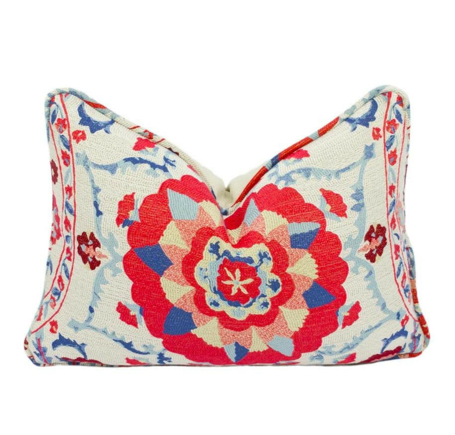 Sanderson - Anthos - Indigo / Red - Woven Jacquard Uzbekistani Suzani Inspired Designer Cushion Cover - Luxury Throw Pillow - Handmade Home