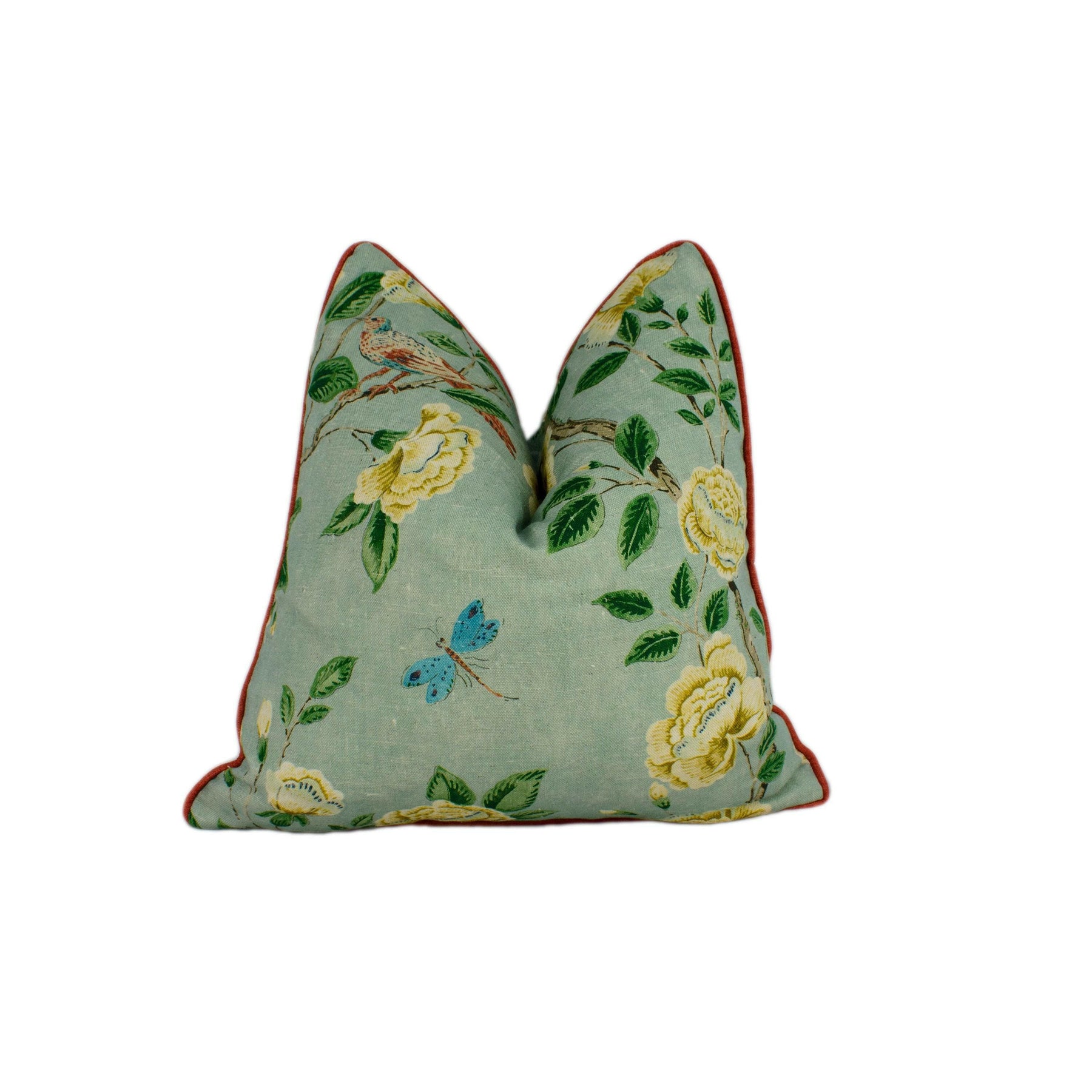 Sanderson - Andhara - Seaglass - Classic Flora and Fauna Chinoiserie Designer Cushion Cover - Luxury Throw Pillow - Handmade Home Décor.