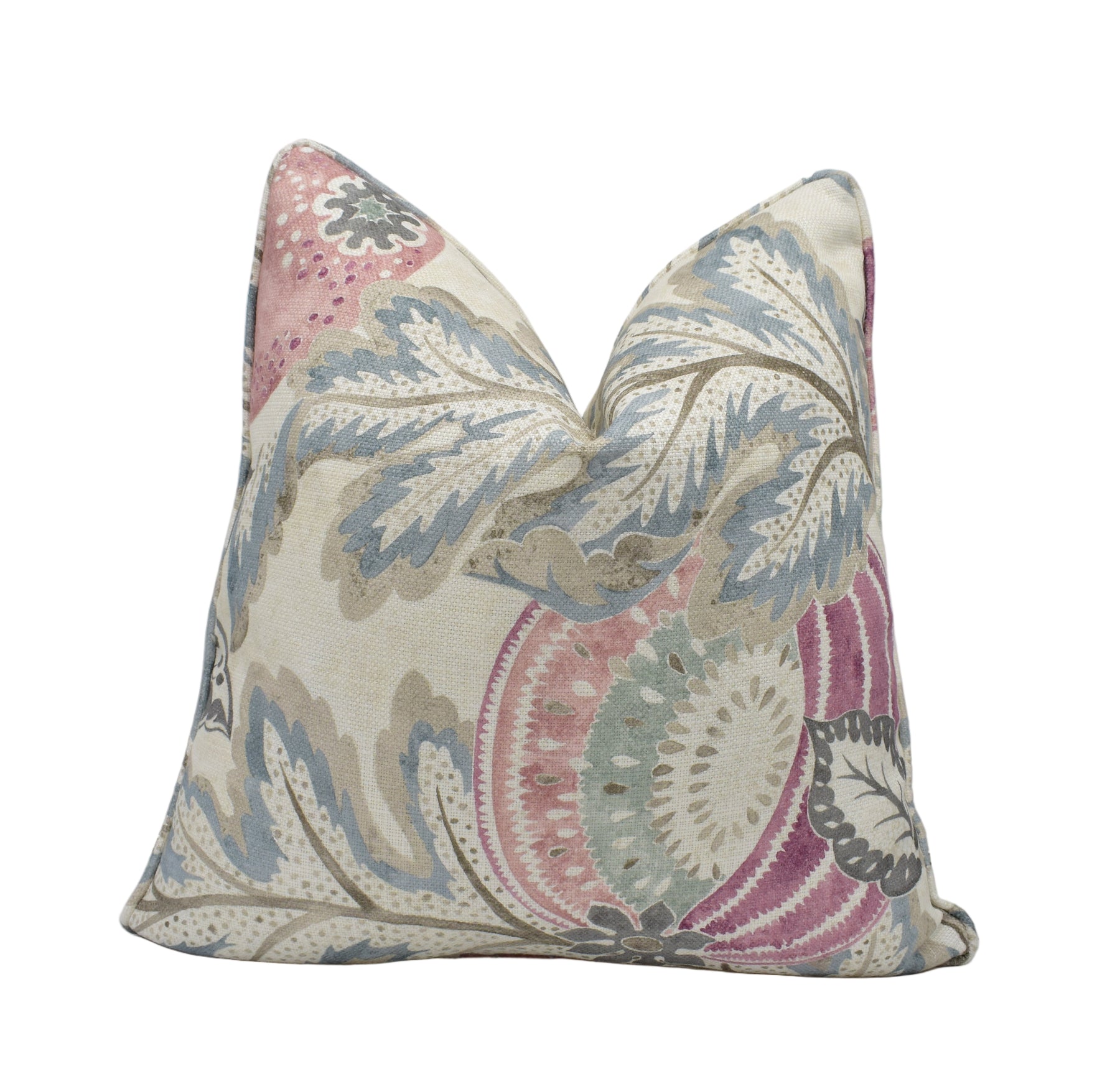 Introduce an airy touch of poetic nature to your décor with the Cantaloupe – Blush/Dove cushion cover, expertly handcrafted by May Evelyne. The romantic, large-scale botanical motif—celebrating oversize fruits and gently curling leaves in dreamy watercolour tones—brings elegance and movement to sofas, reading nooks, or bed styling.