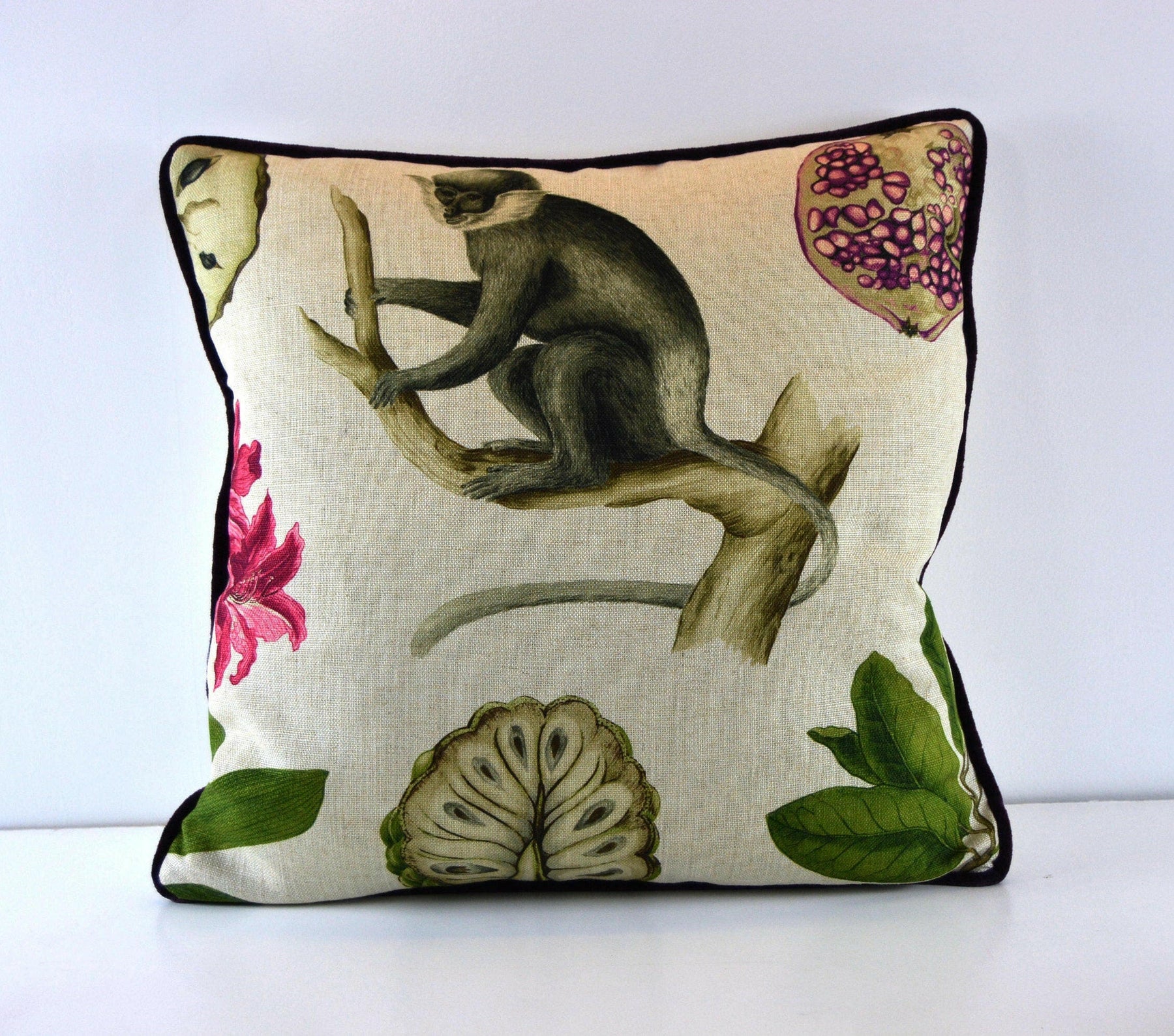Sanderson - Capuchins - Boysenberry - Cushion Cover Contrast Piped Throw Pillow Designer Home Decor