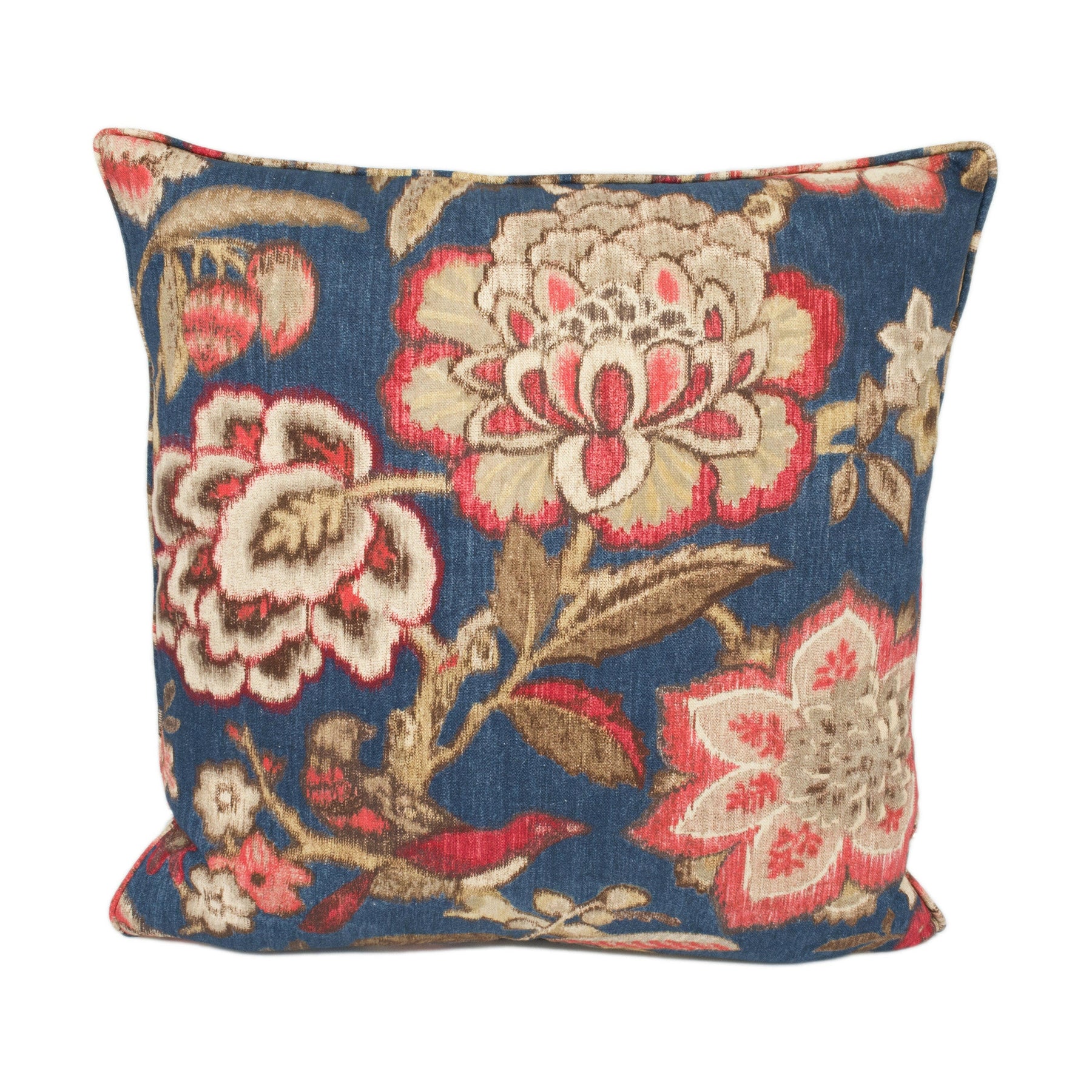 Sanderson - Indra Flower - Indigo / Cherry - Self Piped Ikat Inspired Floral Cushion Cover - Handmade Throw Pillow - Designer Home Décor