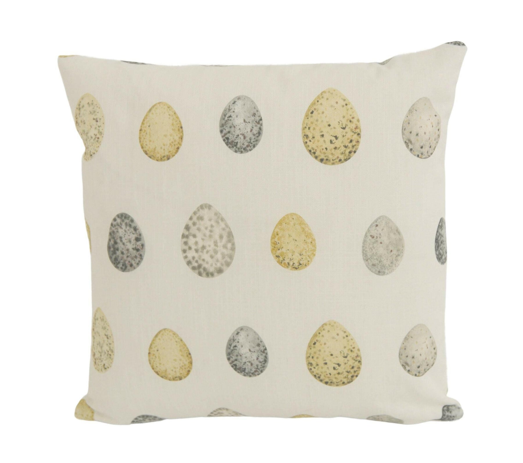 Sanderson - Nest Egg - Corn / Graphite - Charming Mottled Watercolour Eggs Designer Cushion Cover - Luxury Throw Pillow - Handmade Home