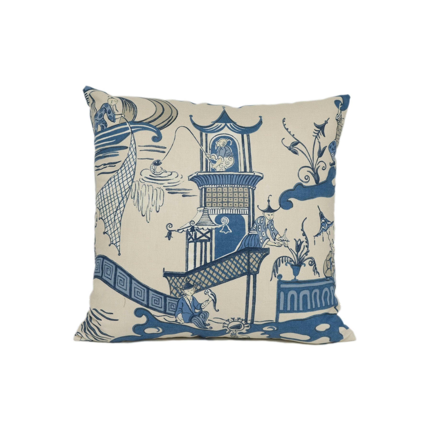 Sanderson - Pagoda River - Indigo / Blue - Vintage Asian Chinoiserie Inspired Designer Cushion Cover - Luxury Throw Pillow - Home Décor.