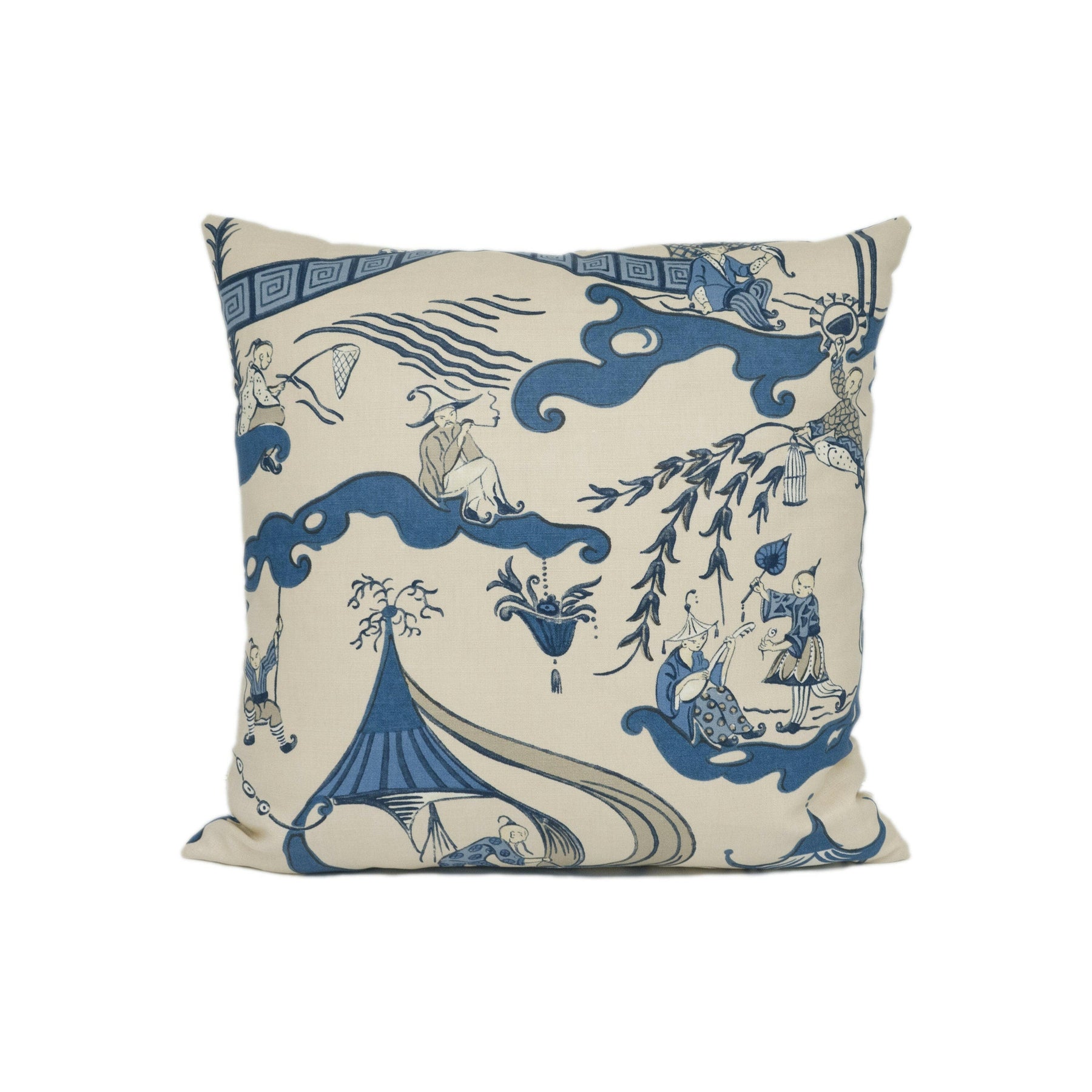 Sanderson - Pagoda River - Indigo / Blue - Vintage Asian Chinoiserie Inspired Designer Cushion Cover - Luxury Throw Pillow - Home Décor