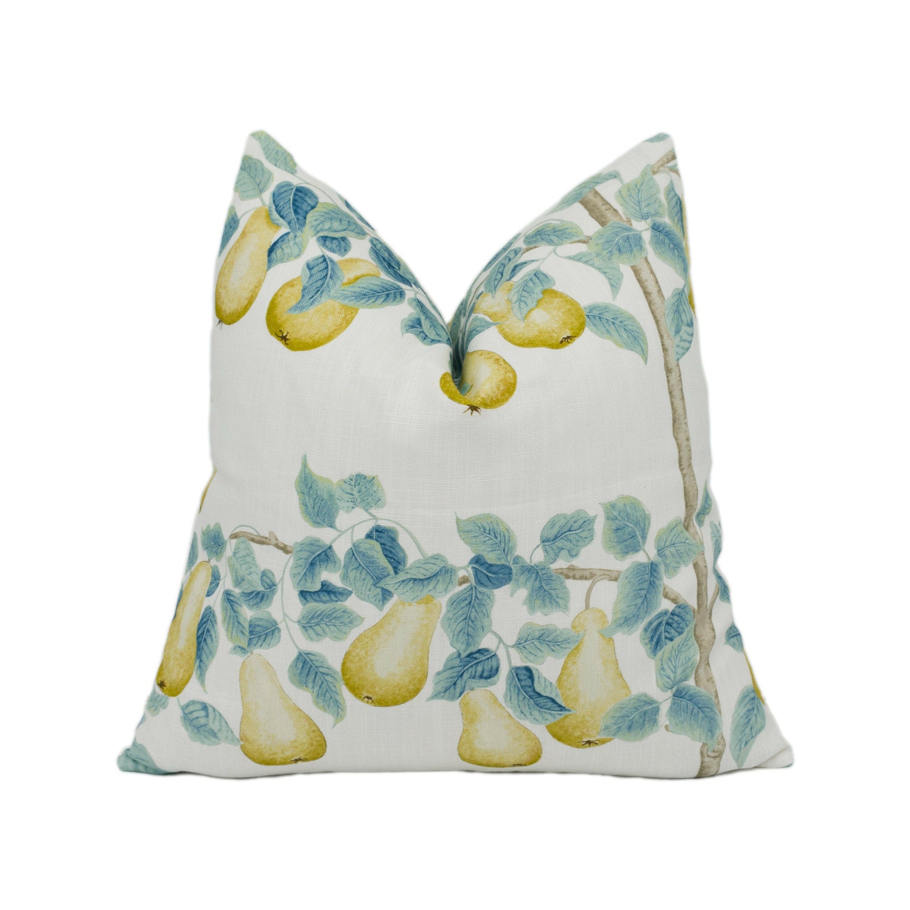 Sanderson - Perry Pears - Gold / Aqua - Stunning National Trust Fruit Orchard Cushion Cover Handmade Throw Pillow Designer Home Décor