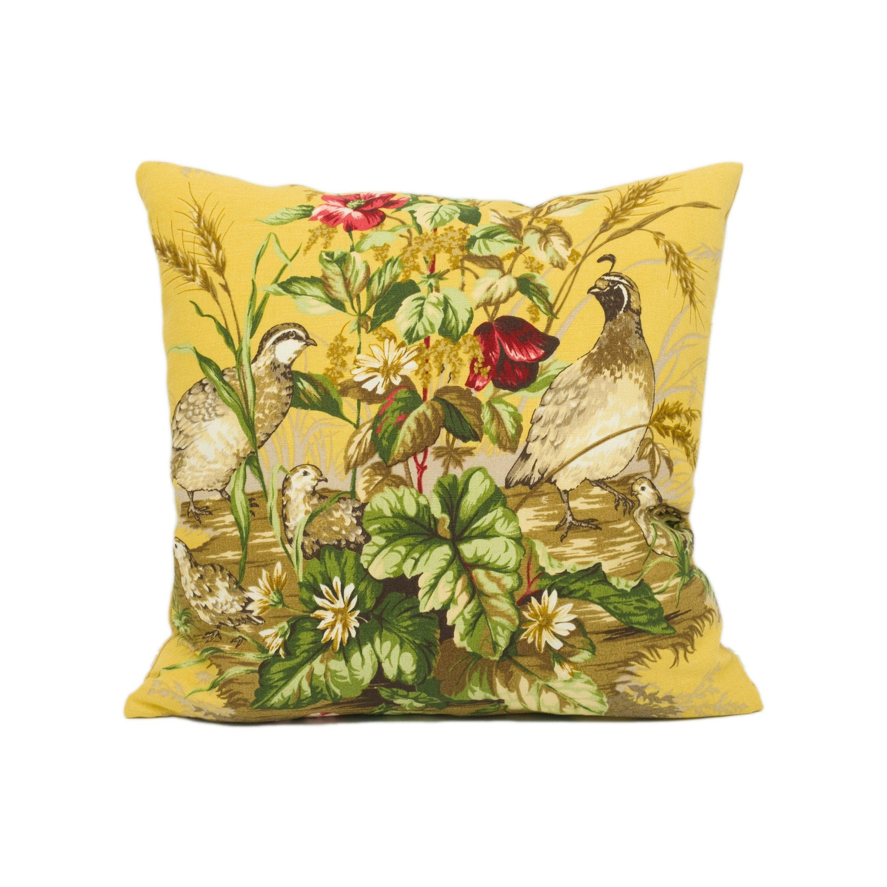 Scalamandre - Edwin's Covey - Multi on Mustard - Traditional Quail Family Designer Cushion Cover - Luxury Throw Pillow - Handmade Home Decor