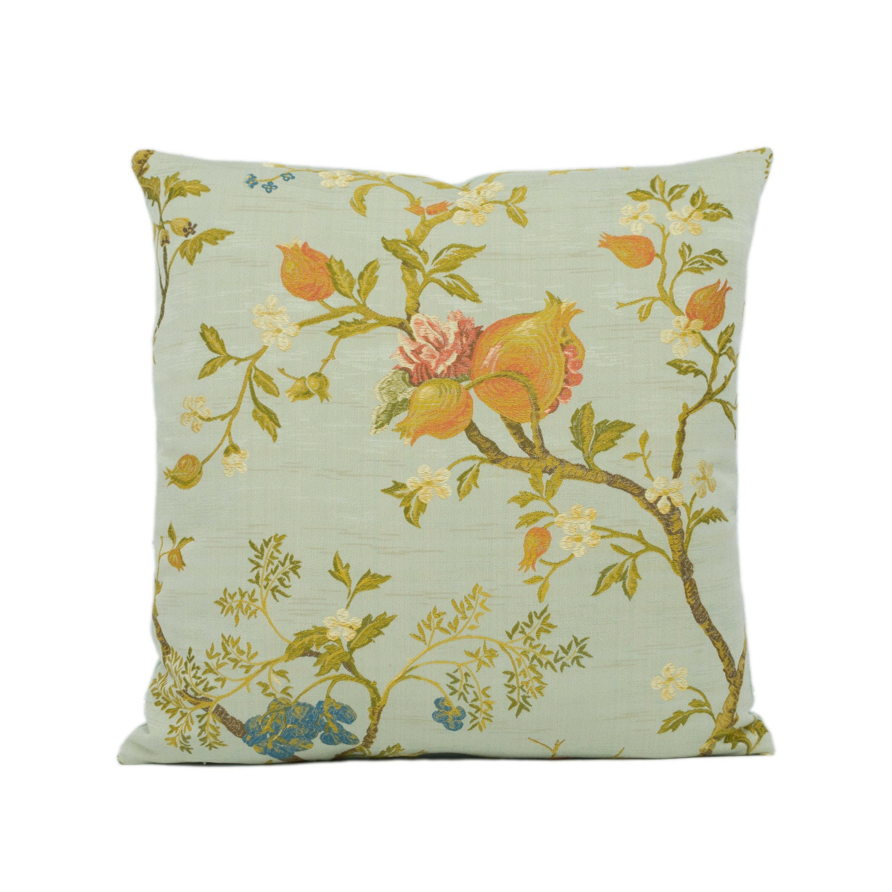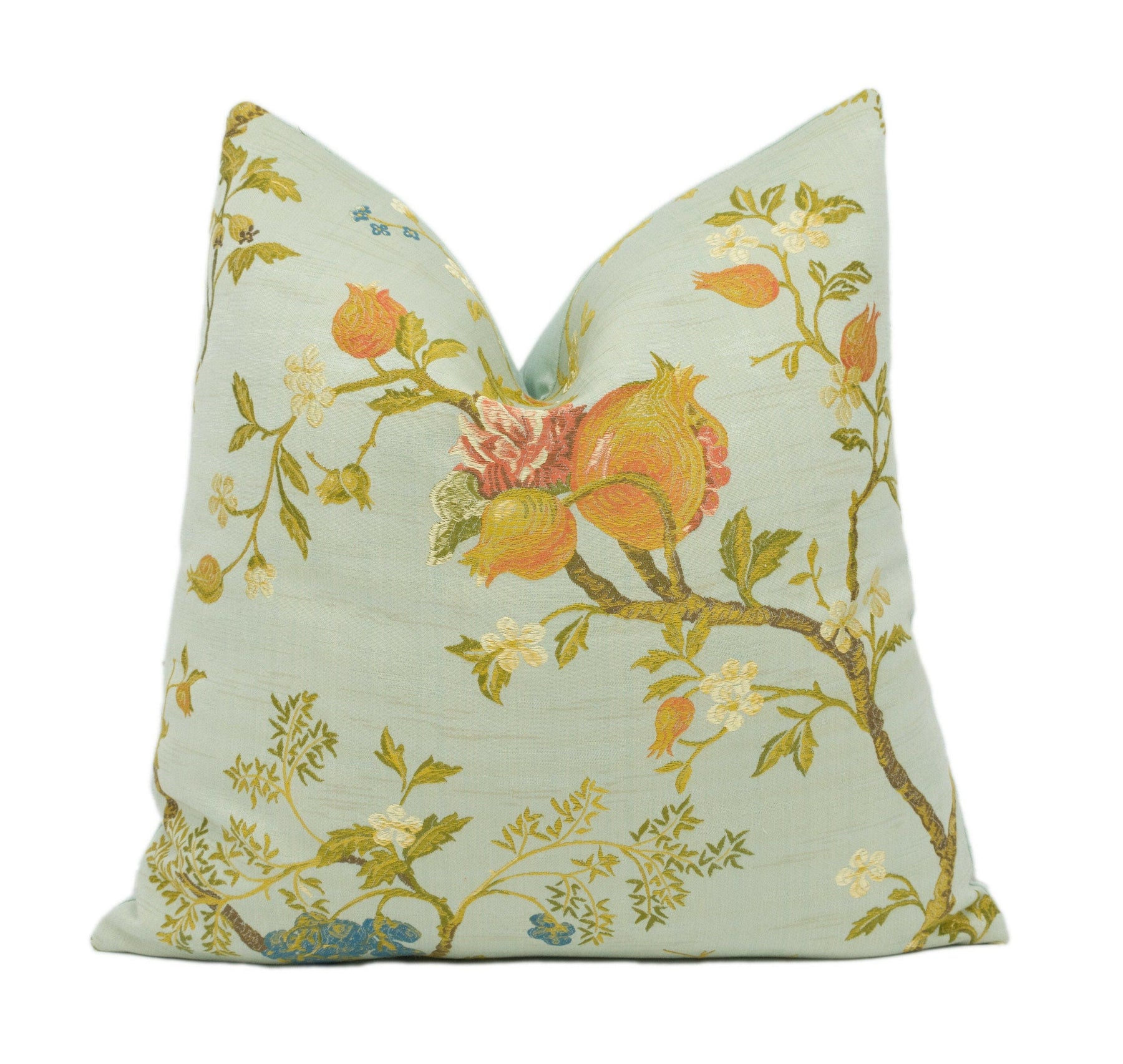Scalamandre - Melograno - Multi on Sky Blue - Romantic Whimsical Indian European Lampas Designer Cushion Cover - Luxury Throw Pillow Home