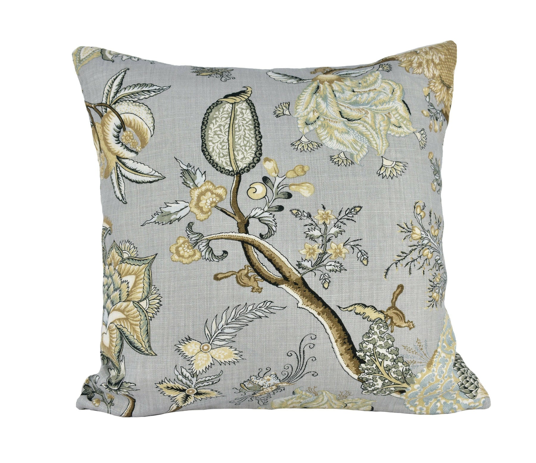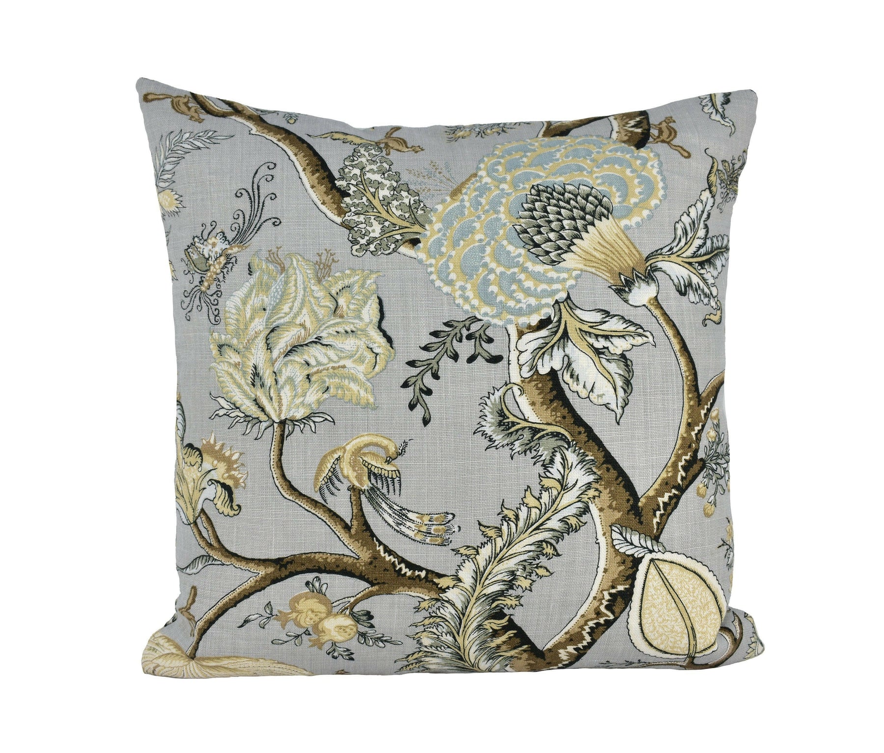 Scalamandre - Pondicherry Linen - Mineral - Bold Indian Tree of Life Floral Designer Cushion Cover Handmade Throw Pillow Luxury Home Decor