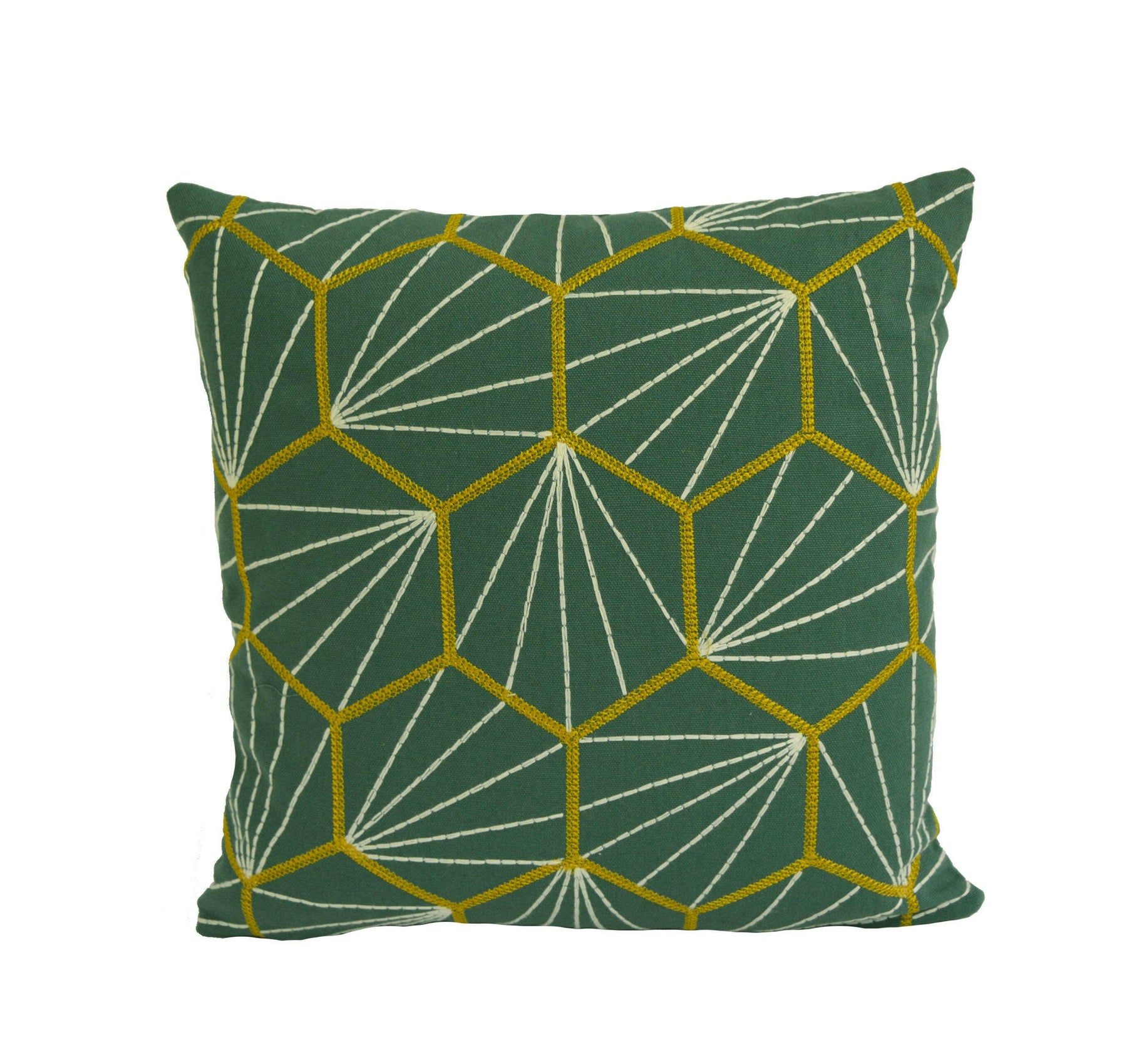 Scion - Aikyo - Forest - Scandi & Japanese Geometric Embroidered Cushion Cover - Handmade Throw Pillow - Designer Home Decor.