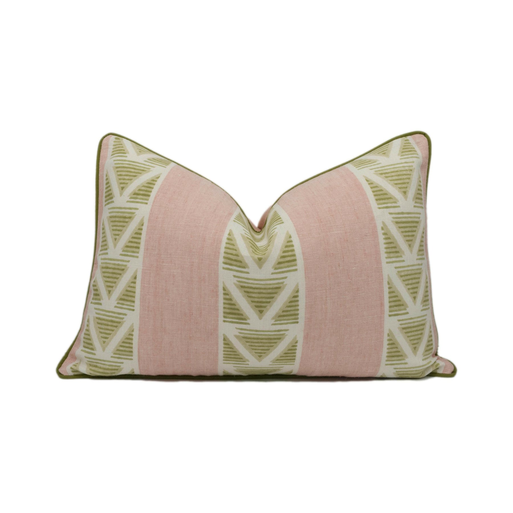 Anna French x Thibaut - Burton Stripe - Blush / Green - Classic Striped Geometric Designer Cushion Cover Luxury Throw Pillow Designer Home.