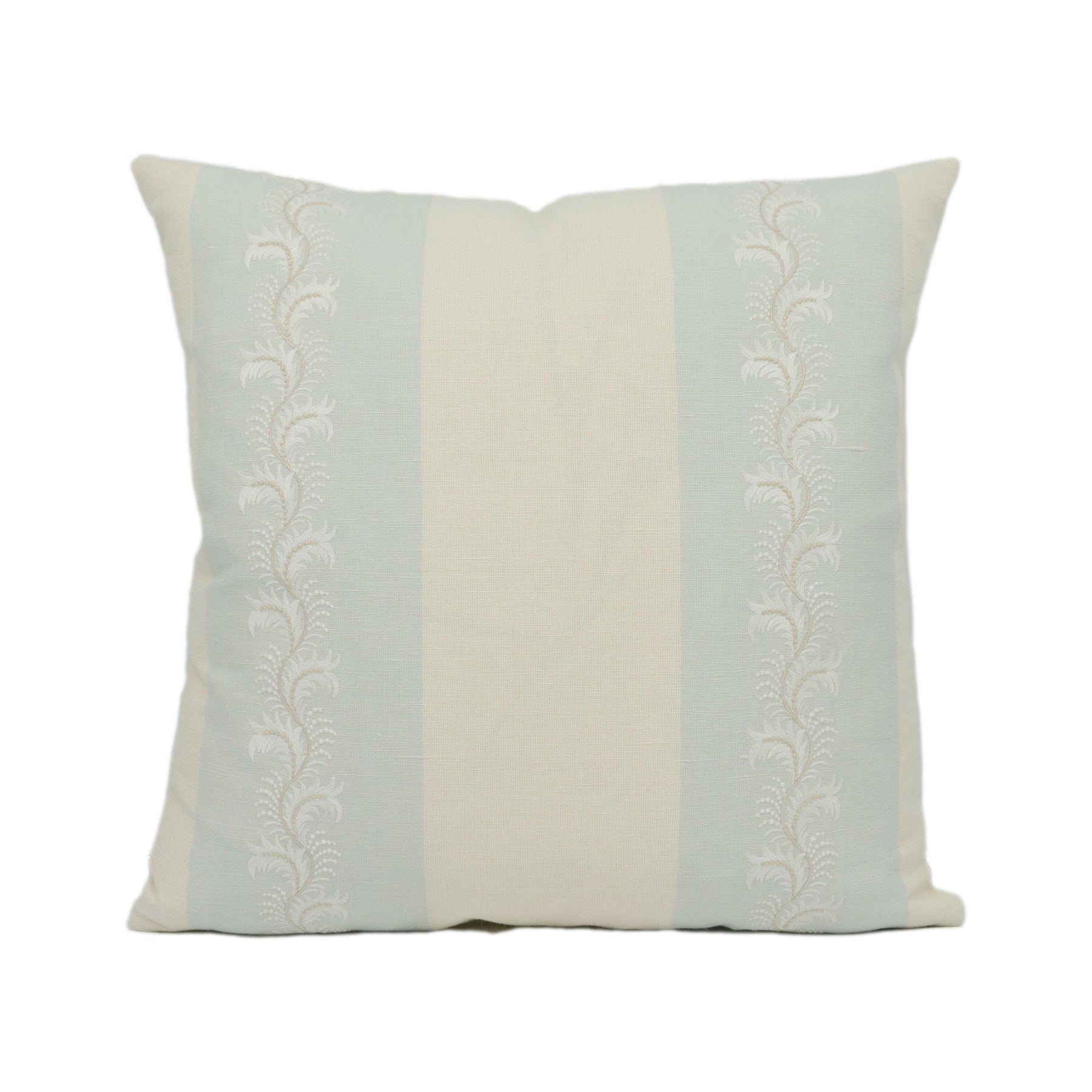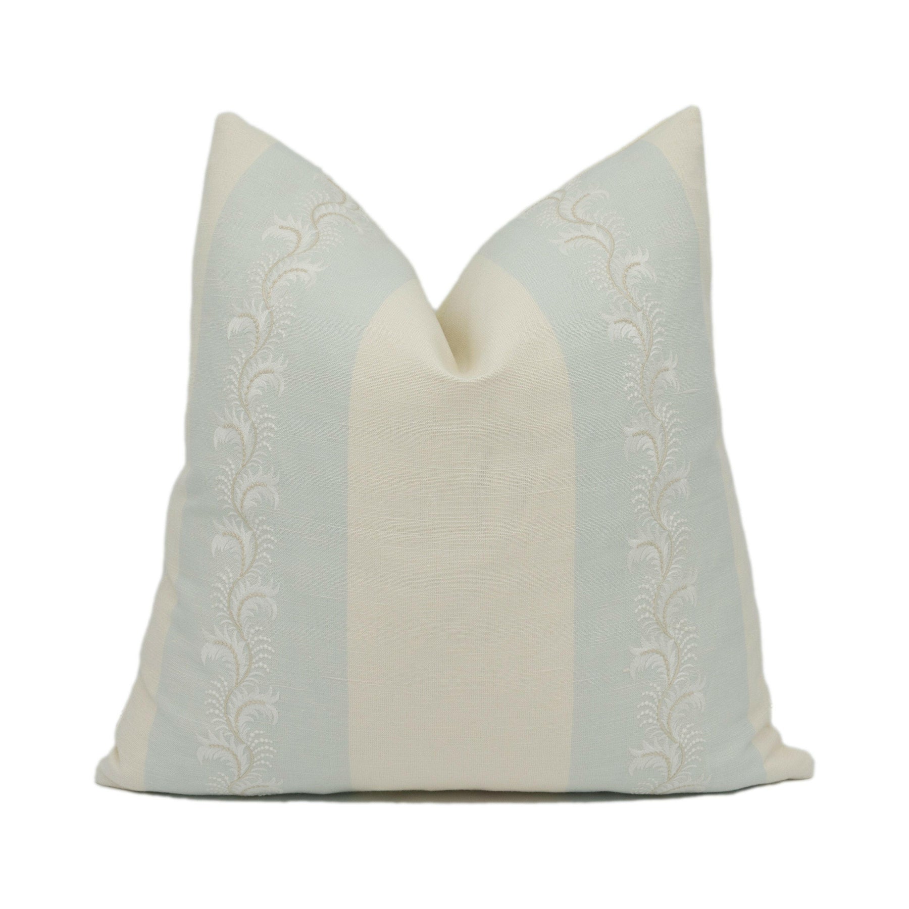 Colefax and Fowler - Feather Stripe - Aqua - Understated Embroidered Cushion Cover - Handmade Throw Pillow - Designer Home Décor
