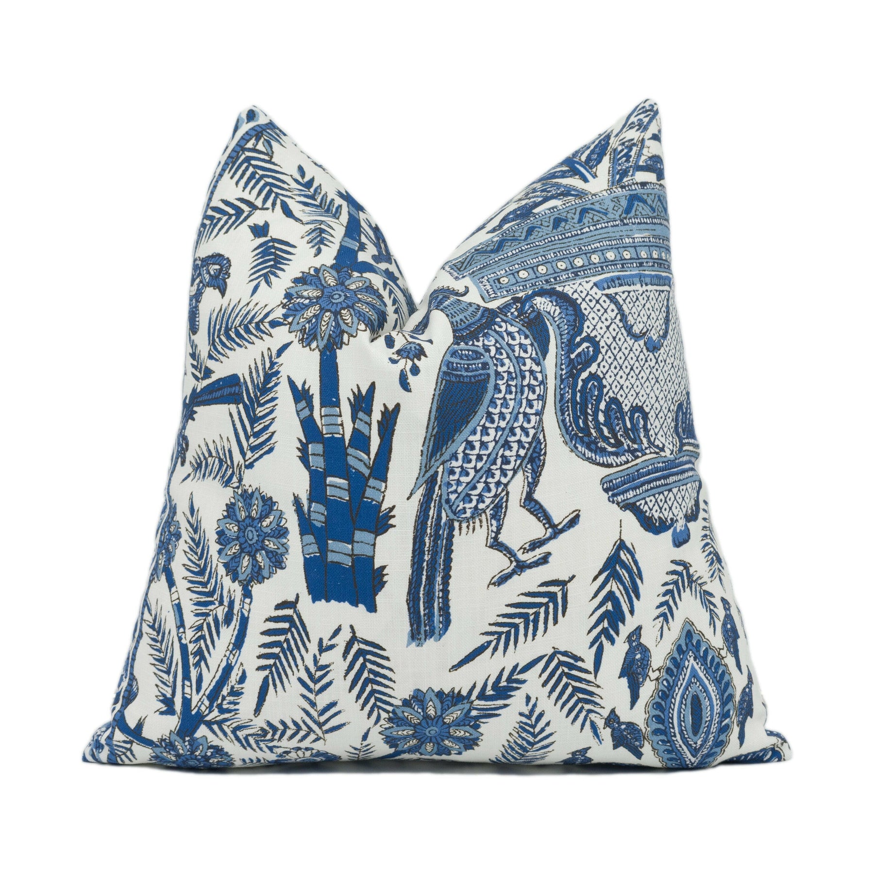 Anna French x Thibaut - Blue and White - Exotic Indienne Inspired Cushion Cover - Handmade Throw Pillow - Designer Home Décor