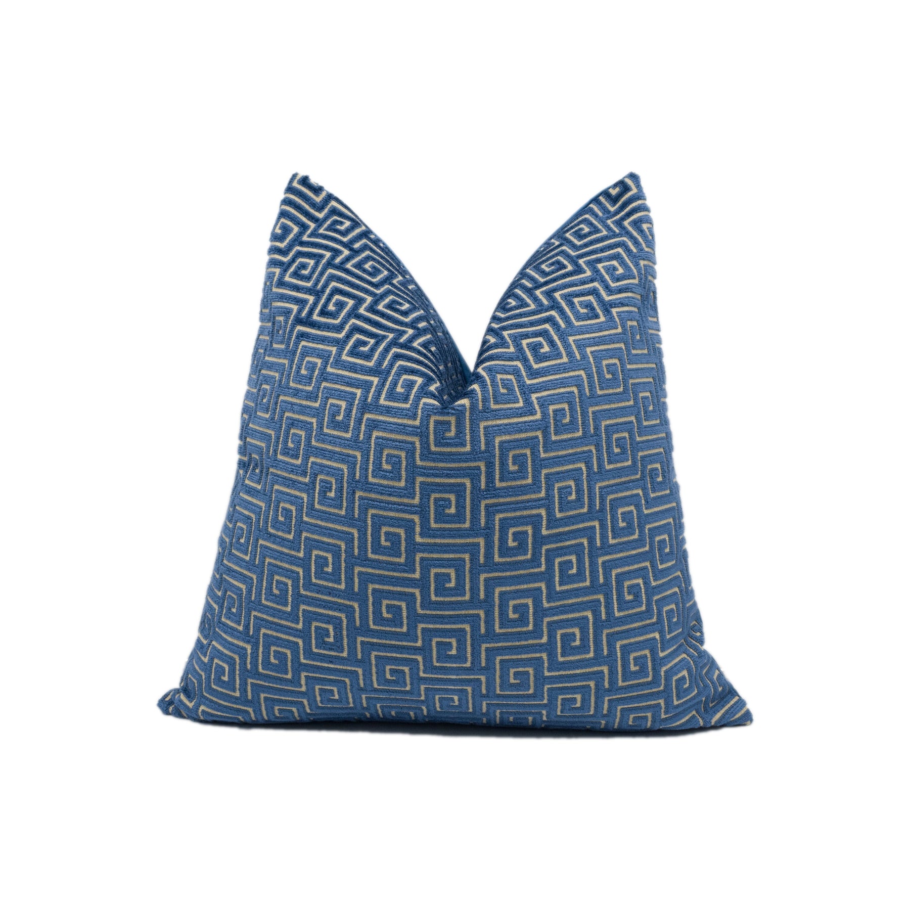 Anna French x Thibautt - Meander Velvet - Navy - Luxurious Greek Key Design Cushion Cover - Handmade Throw Pillow - Designer Home Décor