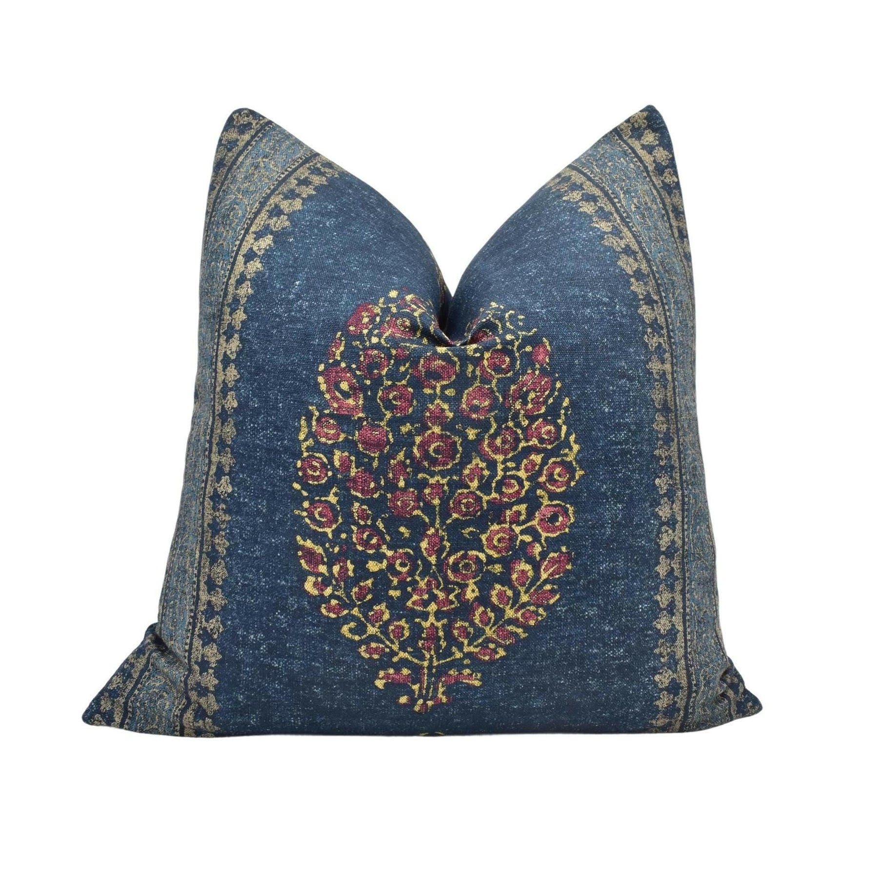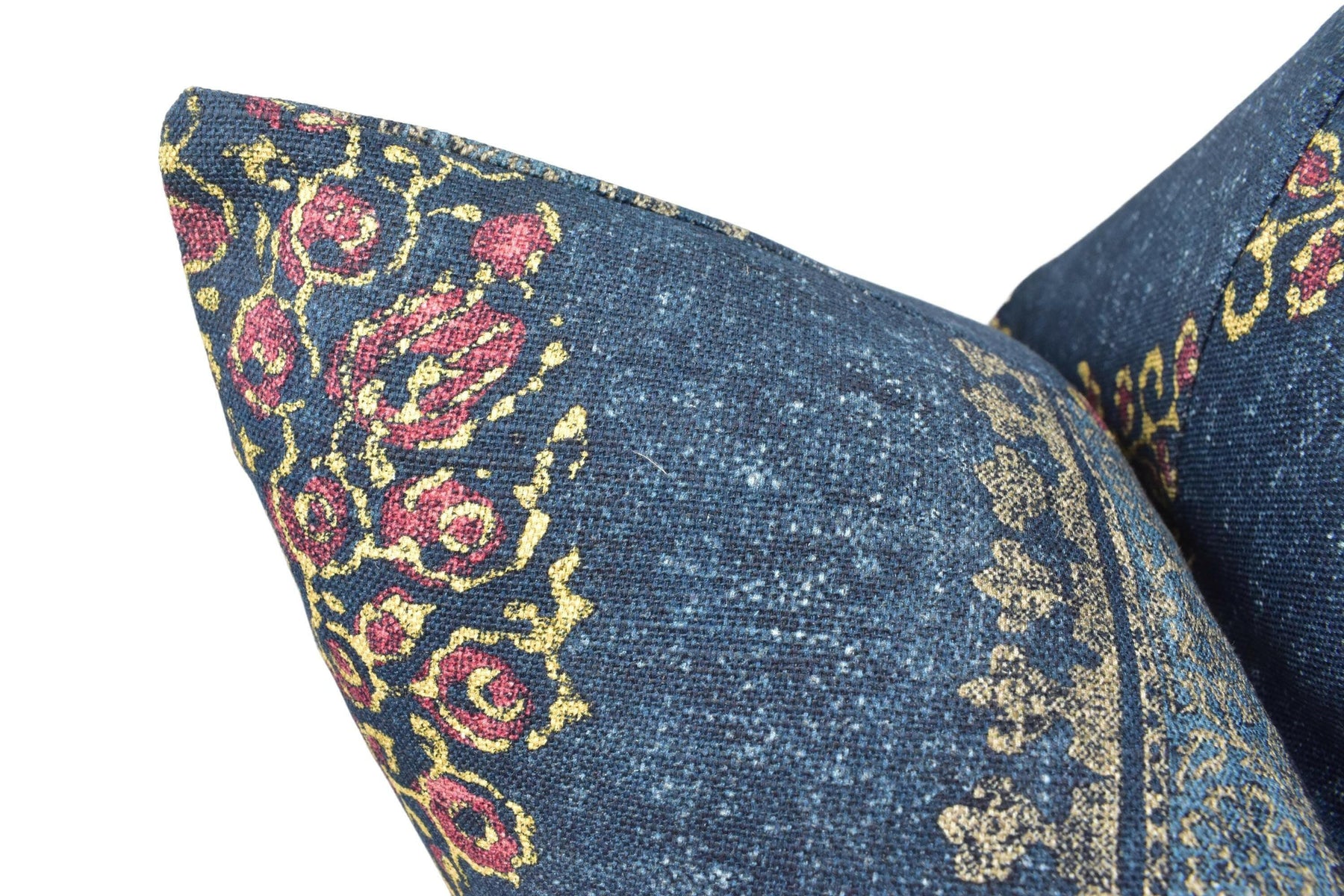 Thibaut - Chappana - Navy and Red - Indian Hindi Hand Block Print Inspired Designer Cushion Cover - Luxury Throw Pillow - Handmade Home
